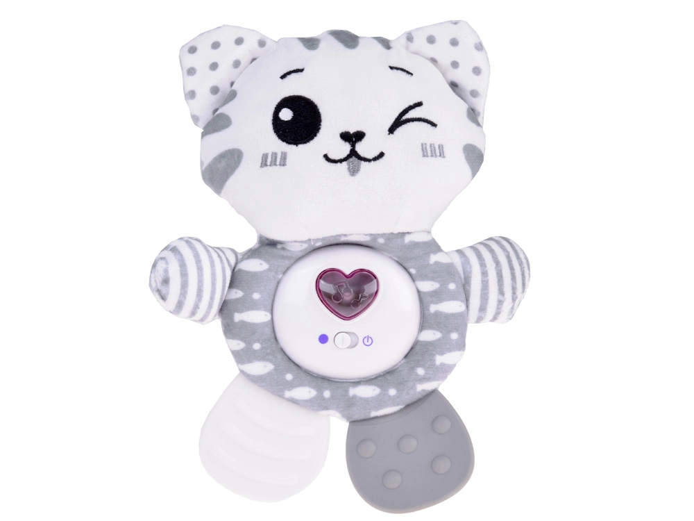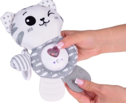 See siidpehme kiisupoeg peidab kõhukeses südamekest – vajutamisel kõlavad rahustavad helid ja meloodiad, mis vahetuvad iga vajutusega. Keha on valmistatud pehmest plüüsist erinevate tekstuuridega taktiilseks stimulatsiooniks; sees on ka kõrin ja krabisevad elemendid kuulmise arendamiseks.