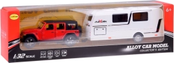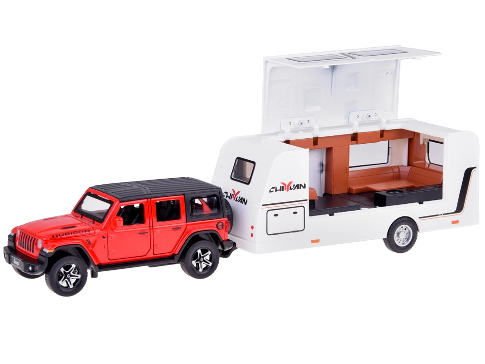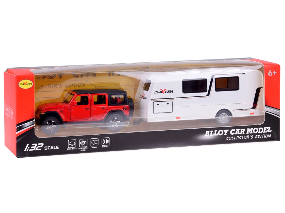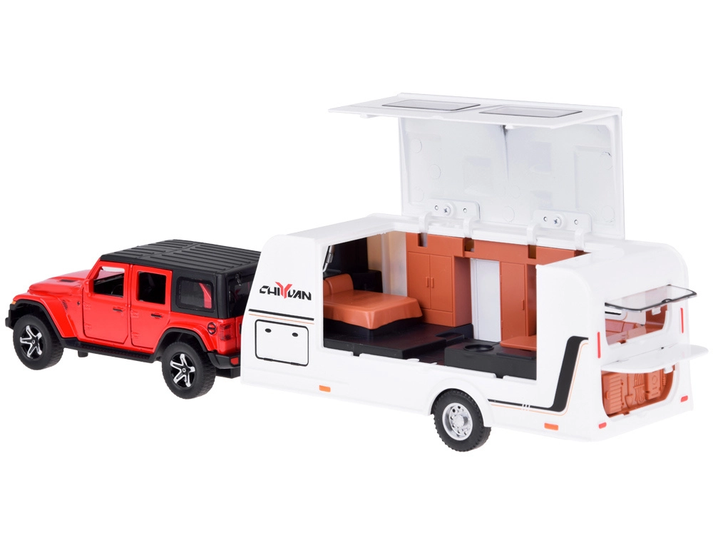 See detailne komplekt toob lasteni puhkuseretkede meeleolu. Metallist ja plastist maastikuautol on avatavad uksed ja tagauste luuk, see aktiveerib signaali ja mootori heli ning süütab esi- ja tagatuled. Tänu pull-back veole piisab, kui tõmmata mudel tagasi ja vabastada.