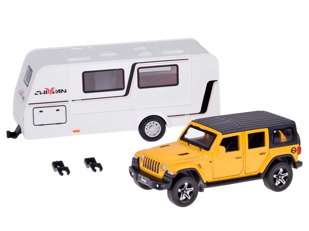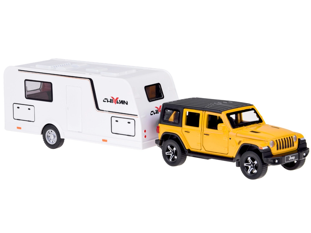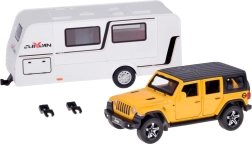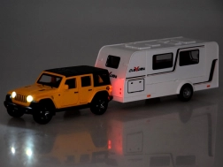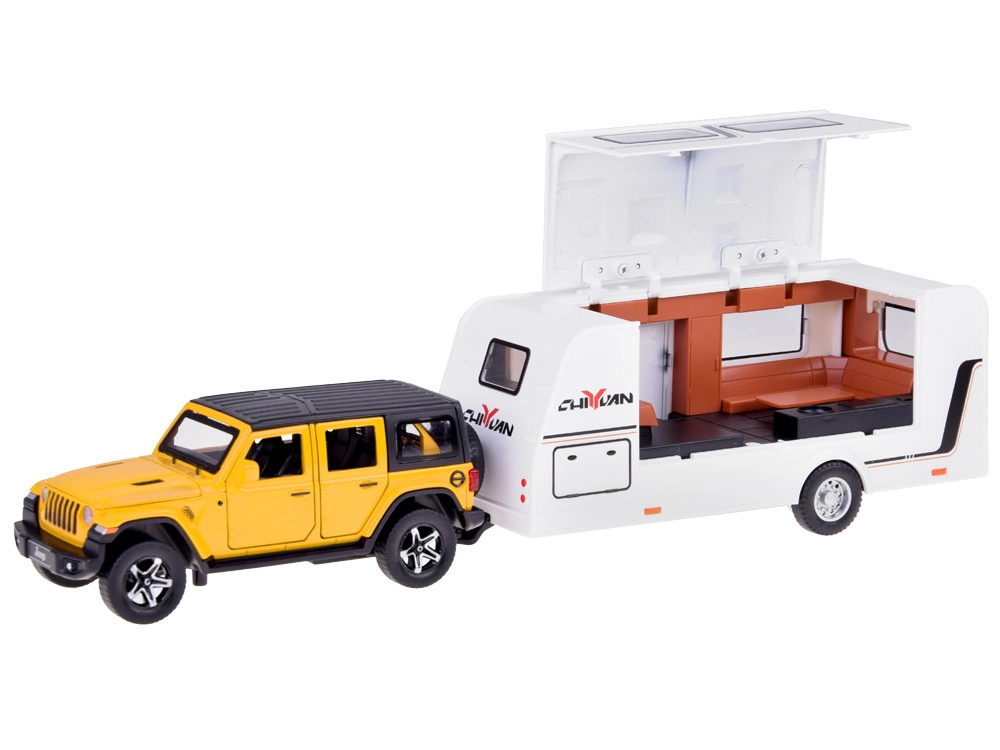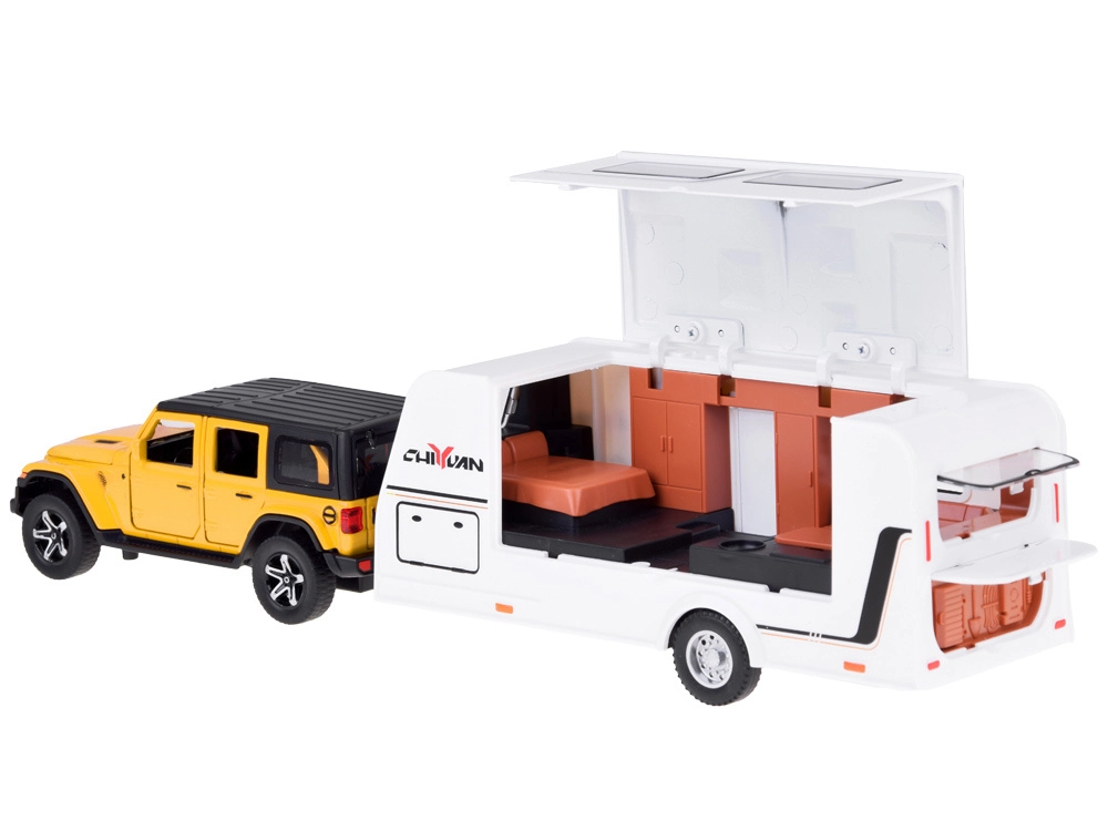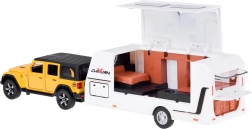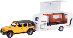 See detailselt viimistletud komplekt ühendab vastupidava maastikuauto ja funktsionaalse haagissuvila, et lapsed saaksid luua oma puhkusejutte. SUV on metallist plastdetailidega, sellel on töötavad uksed, avatav pagasiruum, valgusefektid ja mootoriheli. Tänu pull-back mehhanismile sõidab auto pärast tahatõmbamist ise edasi.