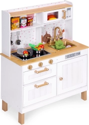 ECOTOYSi puidust laste köök on ideaalne valik väikestele peakokkadele. See toob rõõmu ja lõbu päris köögitegevuste jäljendamisel ning arendab peenmotoorikat ja kujutlusvõimet. Köök on valmistatud kvaliteetsetest materjalidest ja sisaldab 7 metallist köögitarvikut.