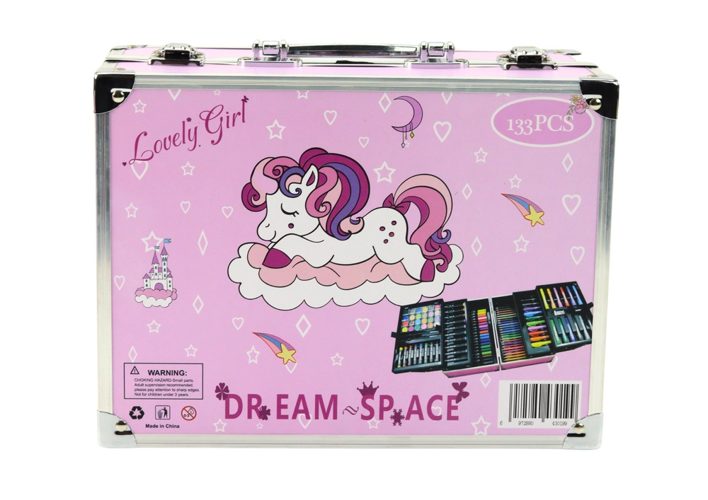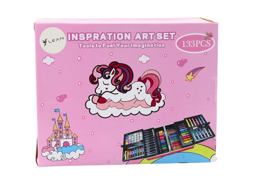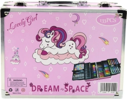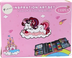 Täielik kunstikomplekt ükssarviku motiiviga praktilises lahtivõetavas kohvris sisaldab kuni 133 osa joonistamiseks ja maalimiseks. Komplektis on akrüülimarkerid, kaheotsalised vildikad, pastellid, grafiit- ja värvipliiatsid, veevärvid, pintsleid, kustukumm, teritaja ning värvimislehed. Ideaalne lastele alates 3. eluaastast, arendab loovust ja peenmotoorikat ning seda on lihtne kaasas kanda tänu kompaktsetele mõõtudele ja käepidemele.