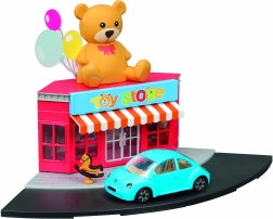 - Plastist mänguasjapoe hoone, metallist automudel 1:43, tänava- ja kõnniteeelemendid, lisad