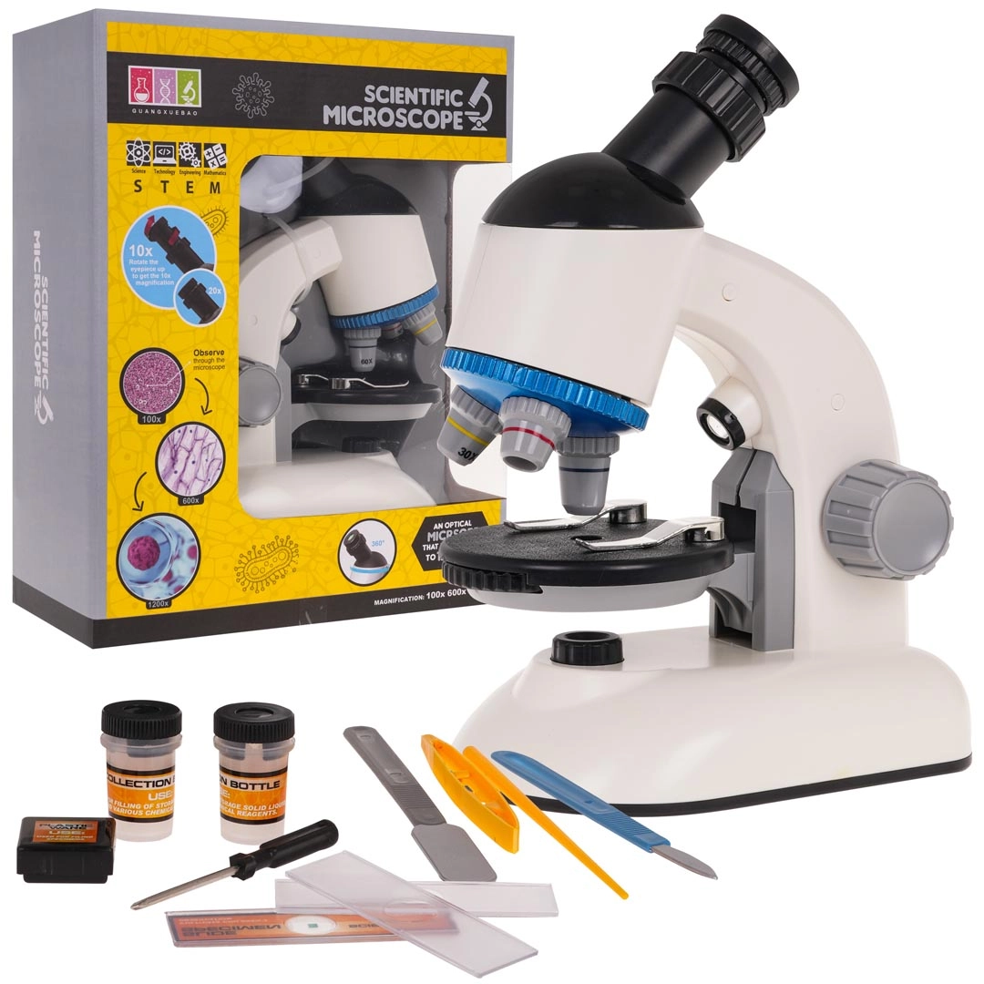 Ideaalne mikroskoop noortele teadlastele alates 6. eluaastast, mis pakub objektide vaatlemist kuni 1200-kordse suurendusega. Sisaldab koheseks kasutamiseks vajalikku lisavarustust.