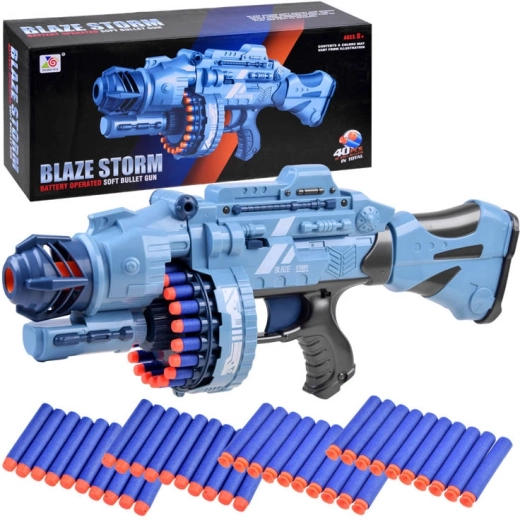 Suur püstol-blaster 40 vahust kuuliga on ideaalne tegevus- ja laskmismängude sõpradele. Blaster on täielikult valmistatud plastikust ning kuulidel on kummist otsikud. Mehhanism võimaldab automaatset laadimist pärast iga lasku, pikendades mängurõõmu. Konstruktsioon võimaldab laskeulatust kuni 12 meetrit ning tänu seadme režiimivahetusele on seda lihtne kasutada.