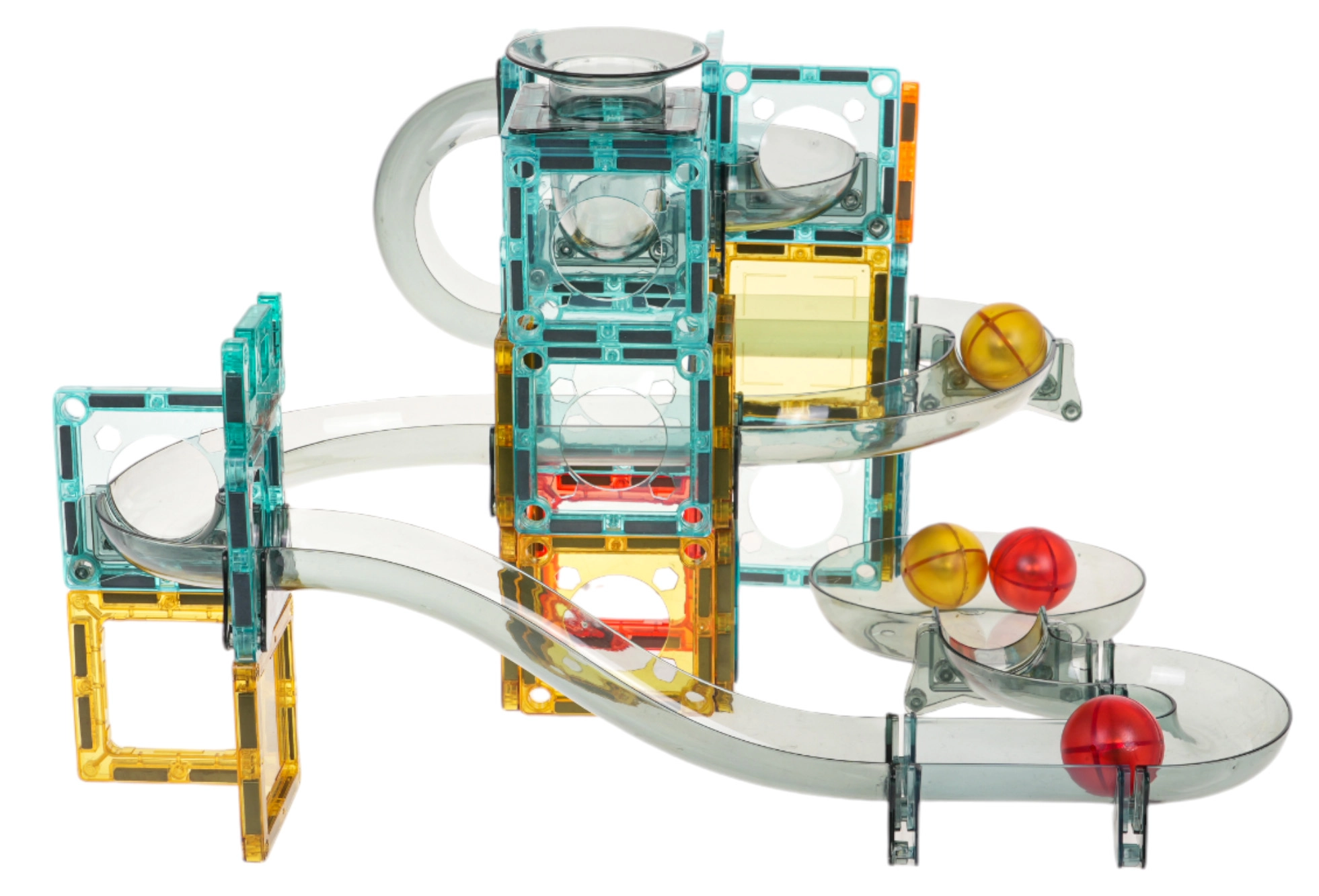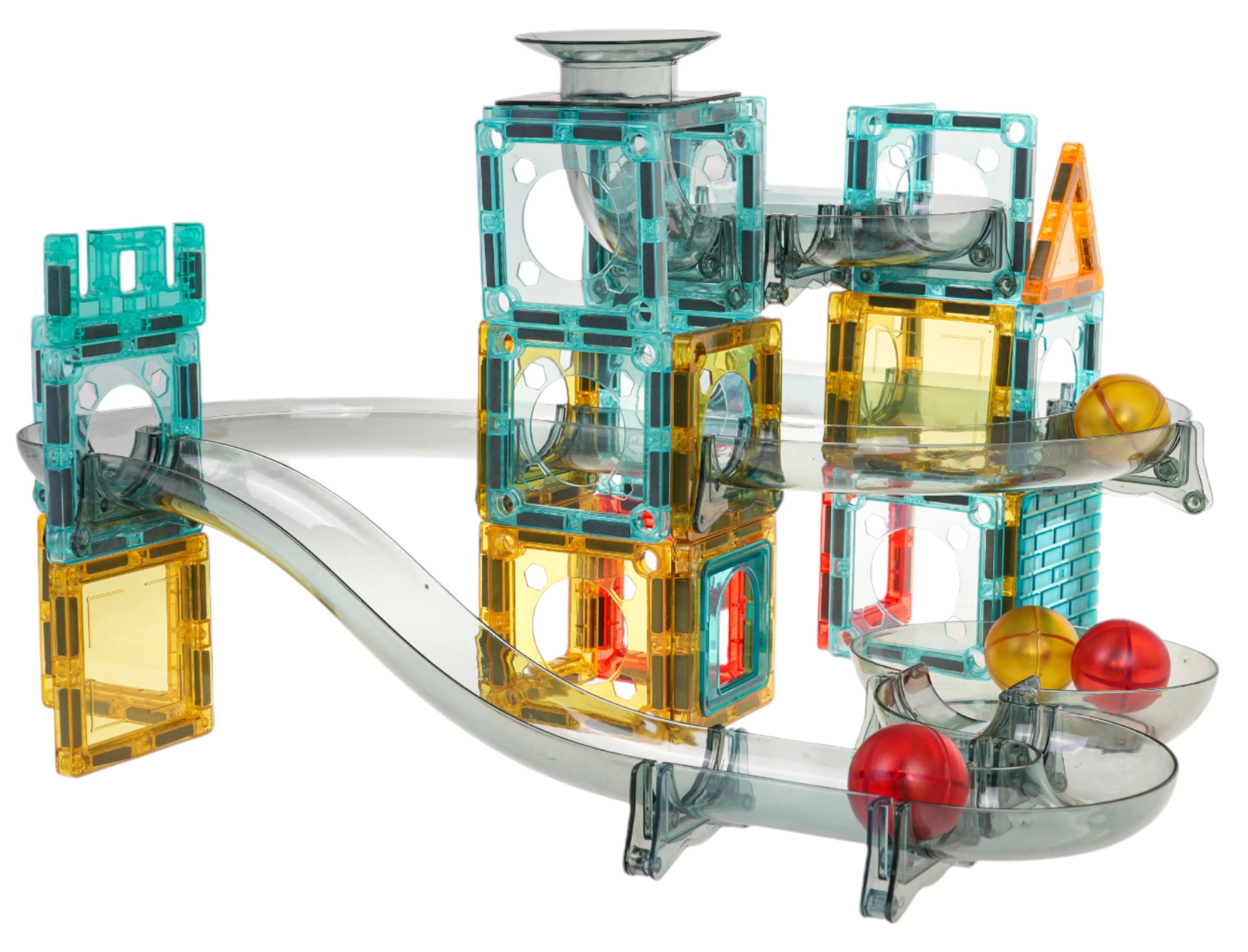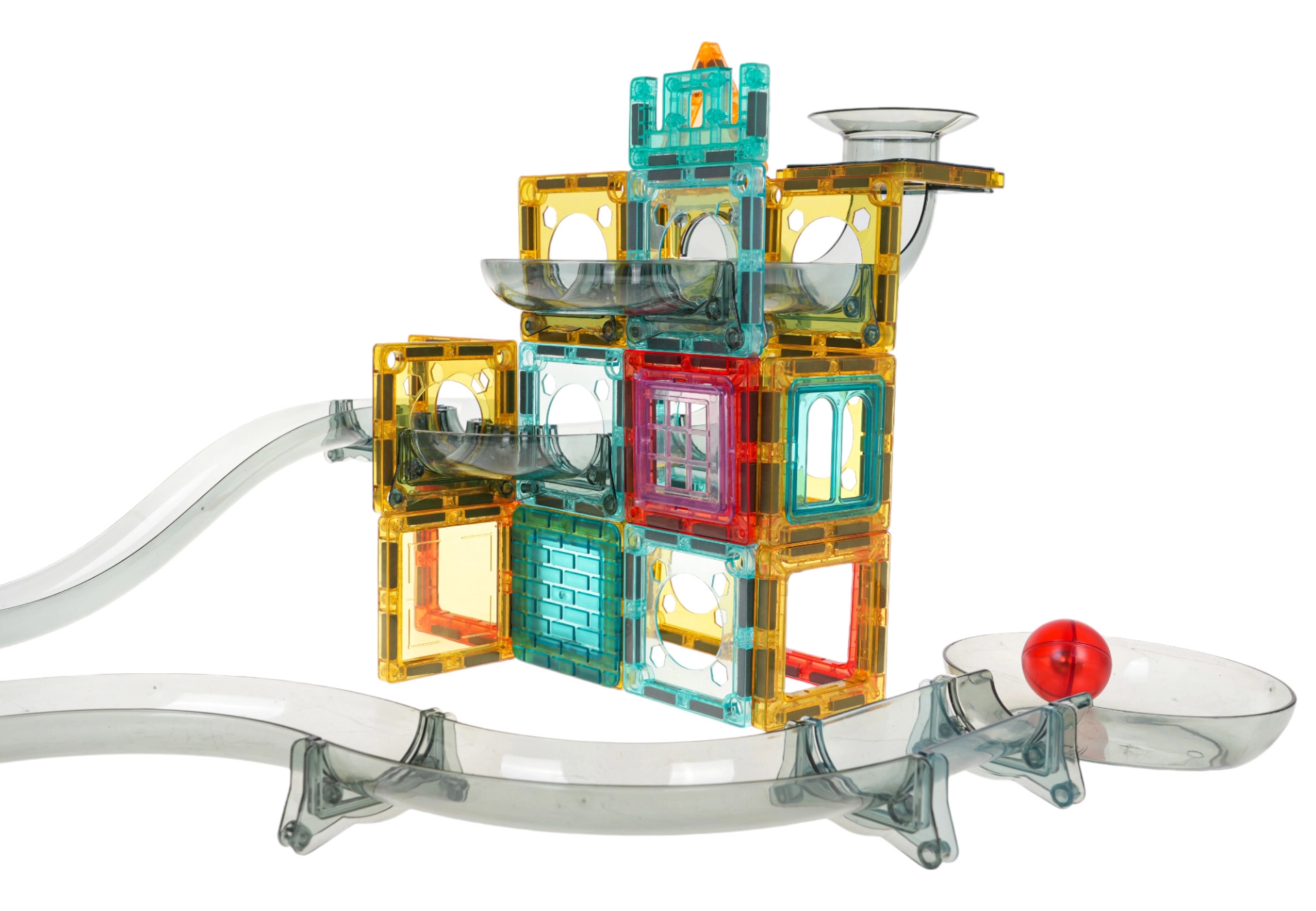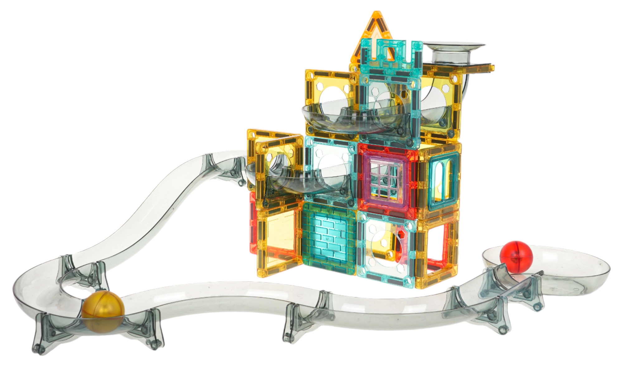 Värviline magnetiline ehituskomplekt lastele alates 3. eluaastast võimaldab ehitada oma kuuliraja läbipaistvatest detailidest. Lapsed naudivad jälgimist, kuidas kuulid liiguvad läbi tunnelite, kurvide ja lehtrite, arendades samal ajal loovust, peenmotoorikat ja käe-silma koostööd. Stabiilne konstruktsioon, erksad värvid ning võimalus ehitada pildiõpetuse järgi või fantaasia abil tagavad tundideks mängurõõmu.