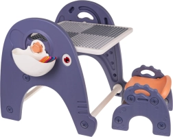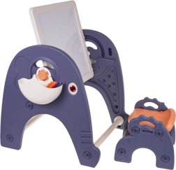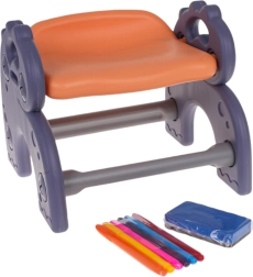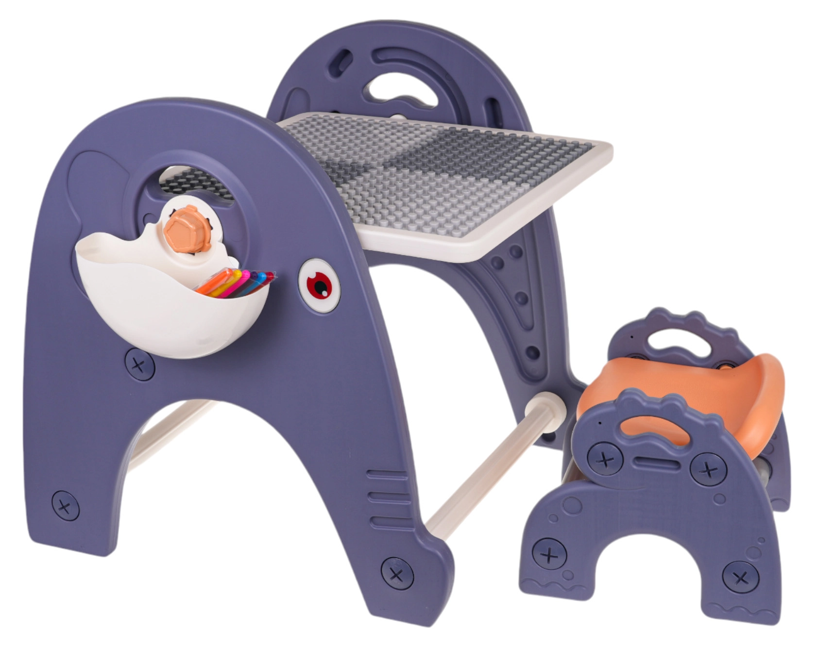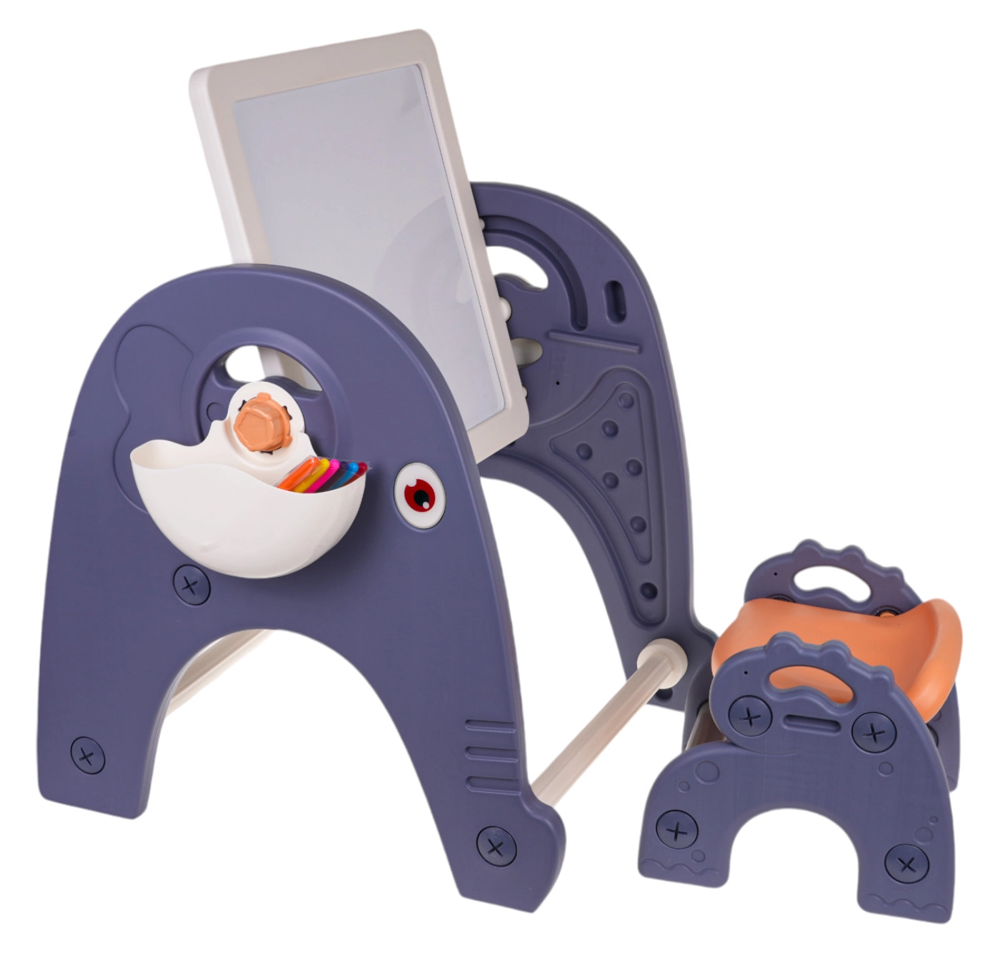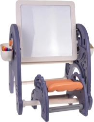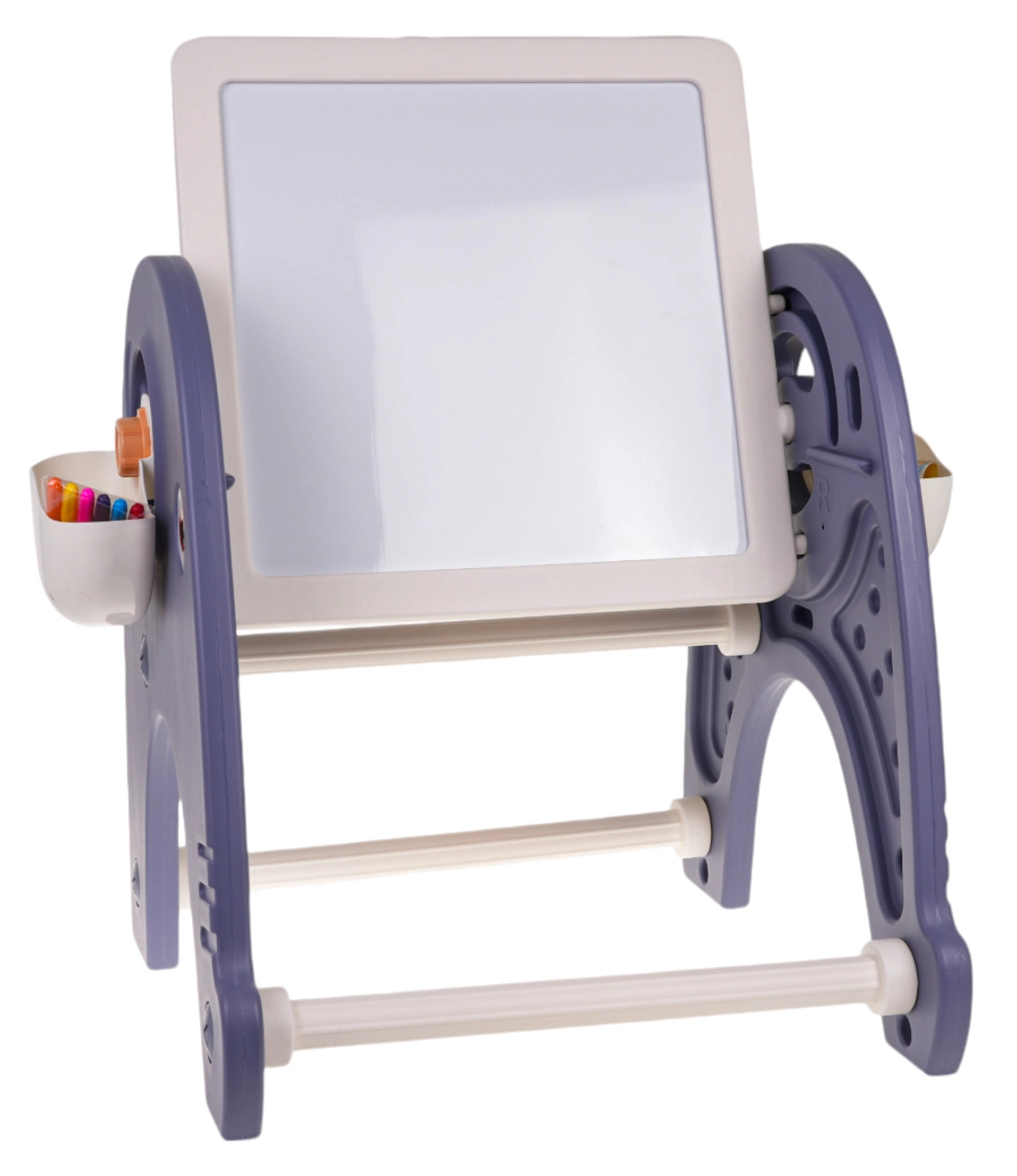 Universaalne komplekt väikestele loojatele: tahvel, laud, klotsipõhi ja tool 4‑ühes lastele alates 3. eluaastast. Tugev konstruktsioon kvaliteetsest plastist, ilma teravate servadeta, võimalusega tahvlit kallutada ja pöörata. Ühel poolel valge tahvel joonistamiseks, teisel poolel tekstuuriga alus klotsidele. Komplektis on 6 värvilist markerit, käsn ja külgmised korvikesed tarvikutele – ideaalne joonistamiseks, õppimiseks ja mänguks.