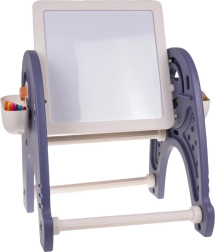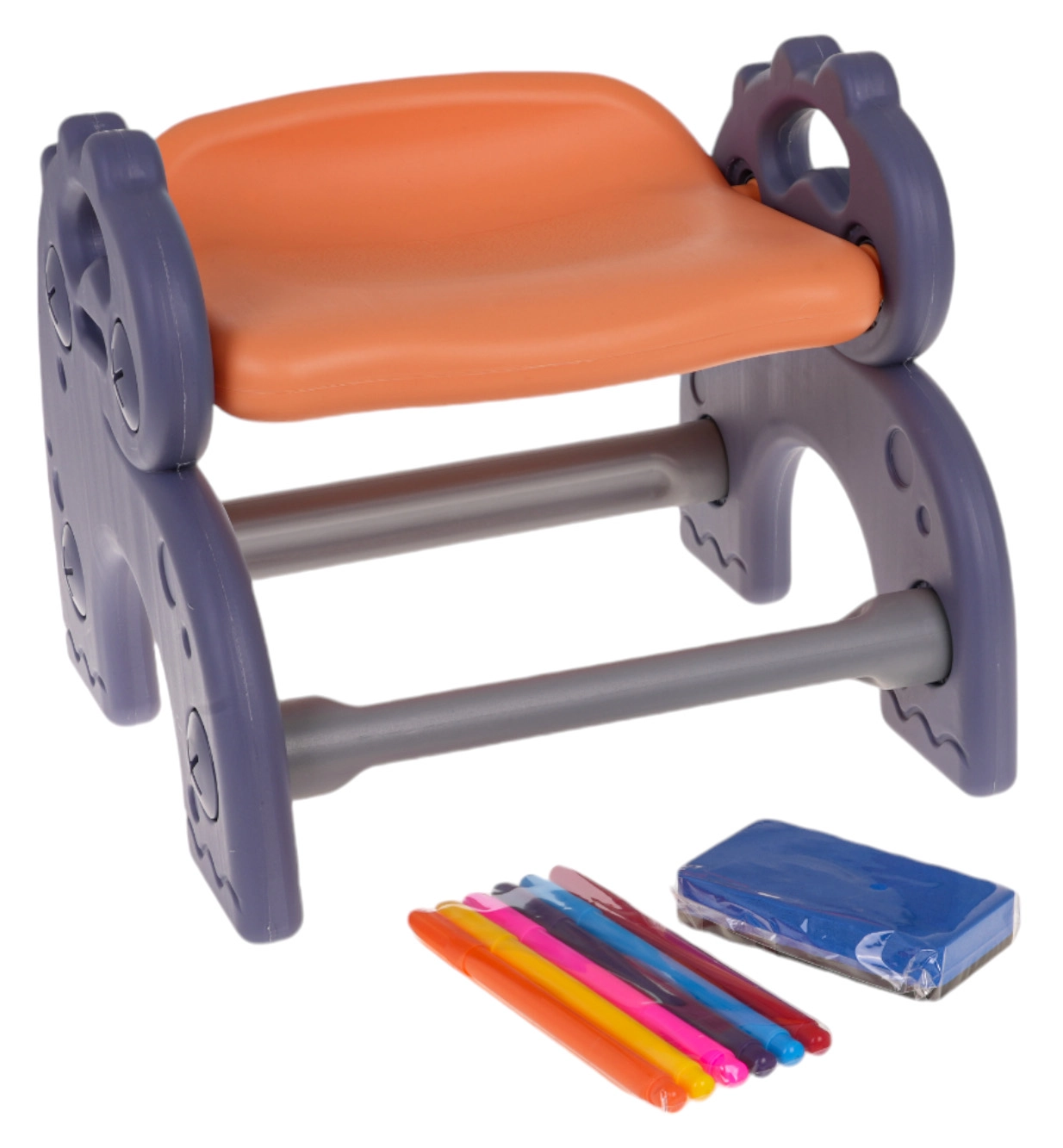Konstruktsioon on valmistatud vastupidavast, ohutust plastist ilma teravate servadeta ning seda täiendab stabiilne tool. Külgedel on kaks korvikest markerite ja pisiasjade hoiustamiseks. Komplektis on käsn, 6 värvilist markerit ja dekoratiivsed kleebised – kõik, mida lapsed vajavad loovaks tegevuseks.