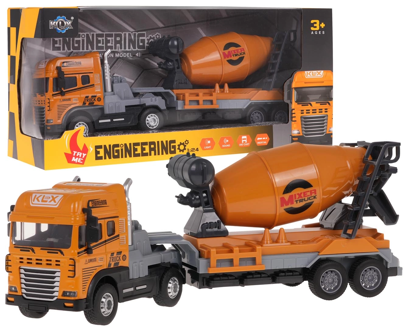 Pöörlev segutrumel jäljendab päris tööprotsessi ehitusel, samas kui vilkuvad esitulded ja realistlikud helid (sõit, signaal, tagurdamine) haaravad lapsed tegevusse. Ideaalne kingitus noortele ehitusmasinate fännidele, toetab kujutlusvõimet ja peenmotoorikat.