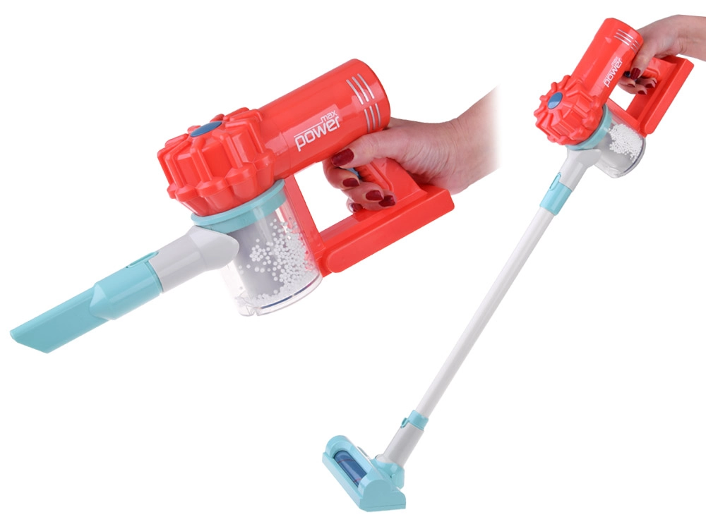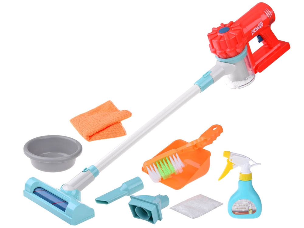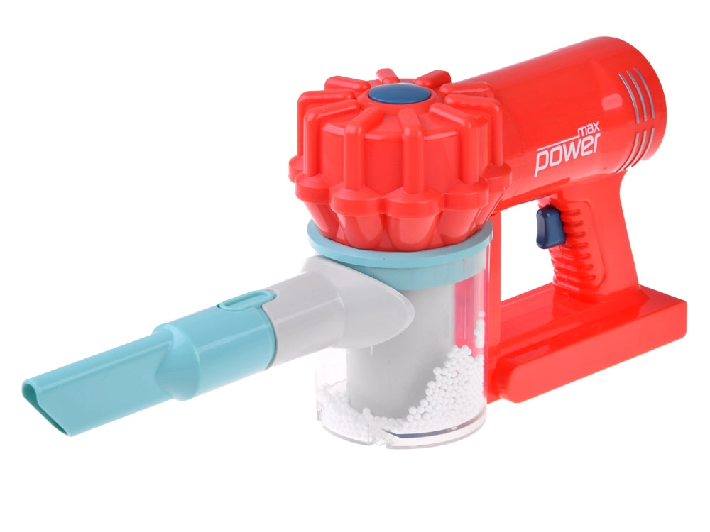See laste koristuskomplekt on valmistatud vastupidavast plastist rõõmsates värvides ning sobib suurepäraselt kodu- või hotellimänguks. Tolmuimeja töötab 3× AA patareiga (ei kuulu komplekti) ja nuppu vajutades tekitab realistliku heli, samal ajal kui läbipaistvas mahutis liiguvad valged kuulikesed – nii tekib lastel tunne, et nad päriselt tolmu imevad.