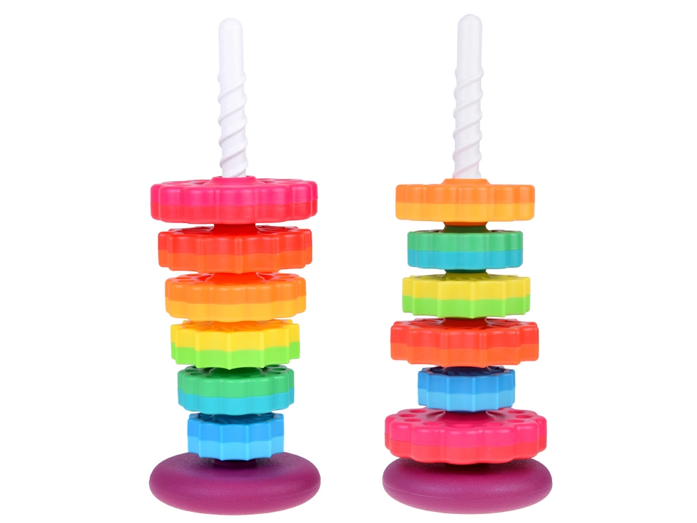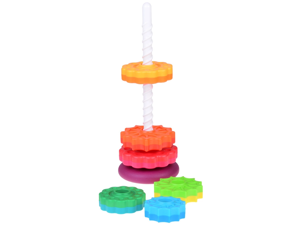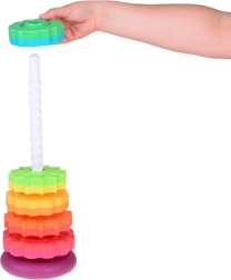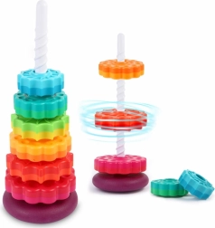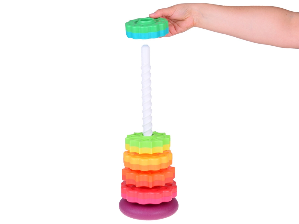 See värviline spiraaltorn köidab lapsi erksate toonide ja rõngaste sujuva libisemisega mööda spiraalset posti. Mängides arendavad lapsed loomulikult haaret, liigutuste täpsust ning õpivad eristama suurusi. Tänu vastupidavale plastile ja stabiilsele alusele on mäng turvaline ja intuitiivne.