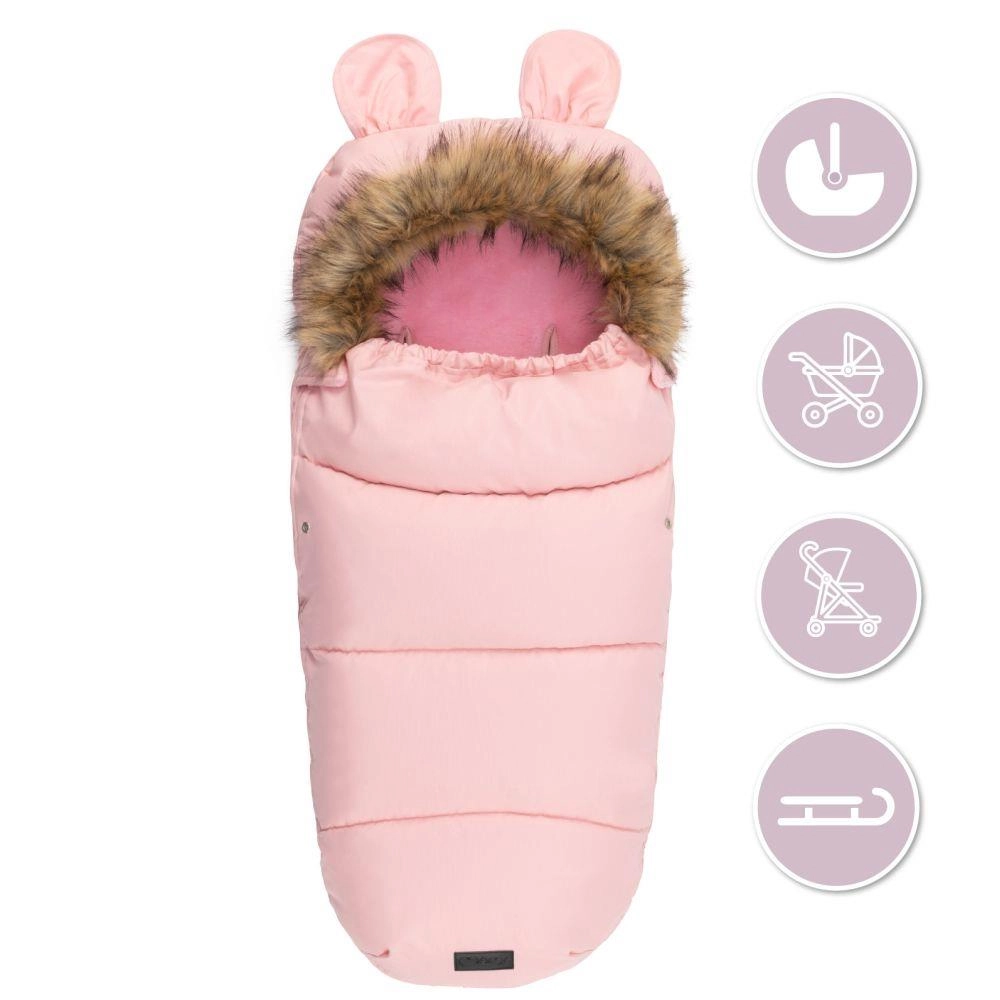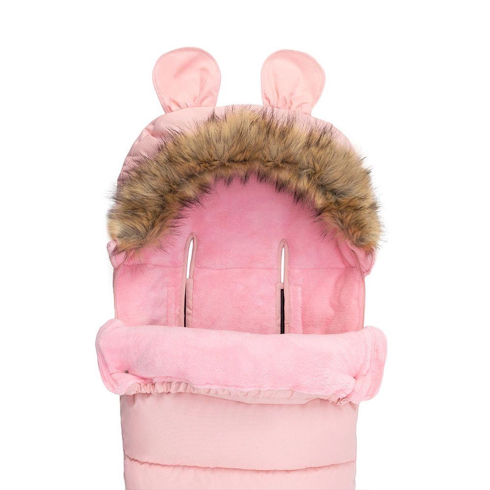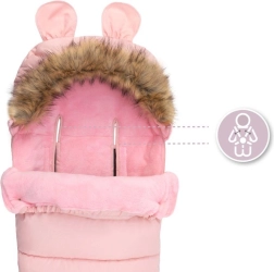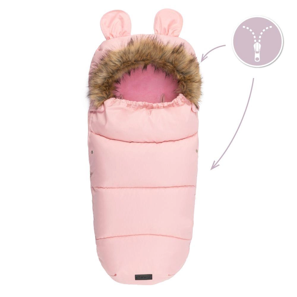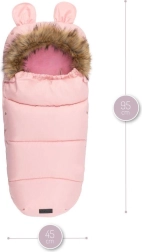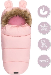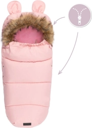 Praktiline täispikk lukk võimaldab last kiiresti paigutada ja soojakotti hõlpsalt tuulutada. Karukõrvadega kapuuts ja eemaldatav kunstkarusnahast äär lisavad armsa ilme ja parema kaitse külma eest. Materjal on veekindel, seega pole niiskus ega lobjakas probleem.