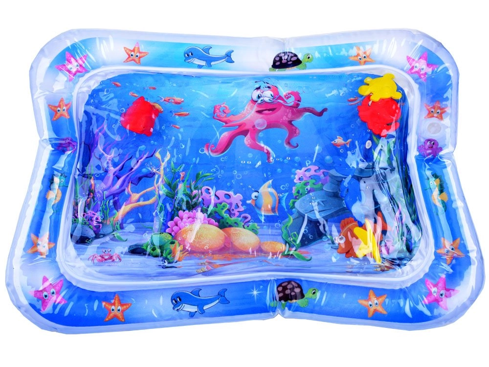 See veega mängumatt on valmistatud kvaliteetsest plastmaterjalist. Pärast ääre täispuhumist ja keskosa veega täitmist liiguvad sees vabalt ujuvad ookeaniteemalised elemendid, mis köidavad lapse tähelepanu ja julgustavad avastama. Matt sobib suurepäraselt kõhuli asendiks, tugevdab kaela-, õla- ja seljalihaseid ning toetab loomulikult õiget motoorset arengut.