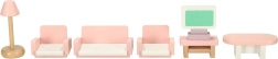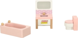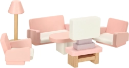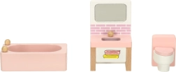 Muutke nukkudemaja hubaseks koduks. See rikkalik naturaalpuidust mööblikomplekt pakub kõike nelja ruumi täielikuks sisustamiseks: elutuba, magamistuba, vannituba ja köök. Vastupidav teostus ja mahedad pastelsed toonid loovad harmoonilise keskkonna igapäevaseks mänguks.