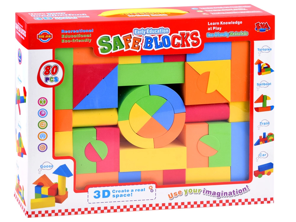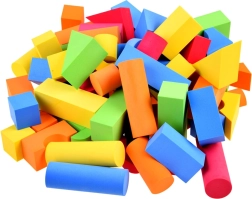 Värviliste vahust ehitusklotsidega naudivad lapsed tunde lõbusat mängu, luues mitmekesiseid konstruktsioone. Komplekt sisaldab 80 klotsi erinevates vormides ja värvides, mis aitavad arendada kujutlusvõimet ja loogilist mõtlemist. Need klotsid on valmistatud kvaliteetsest vahust, on ohutud ja piisavalt vastupidavad pikaajaliseks kasutamiseks.