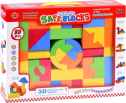Mäng klotsidega toetab kujundite ja värvide äratundmist, parandab koordinatsiooni ning pakub suurepäraseid võimalusi peenmotoorika arendamiseks. Tänu CE-sertifikaadile võite olla kindlad, et klotsid vastavad Euroopa ohutusstandarditele.