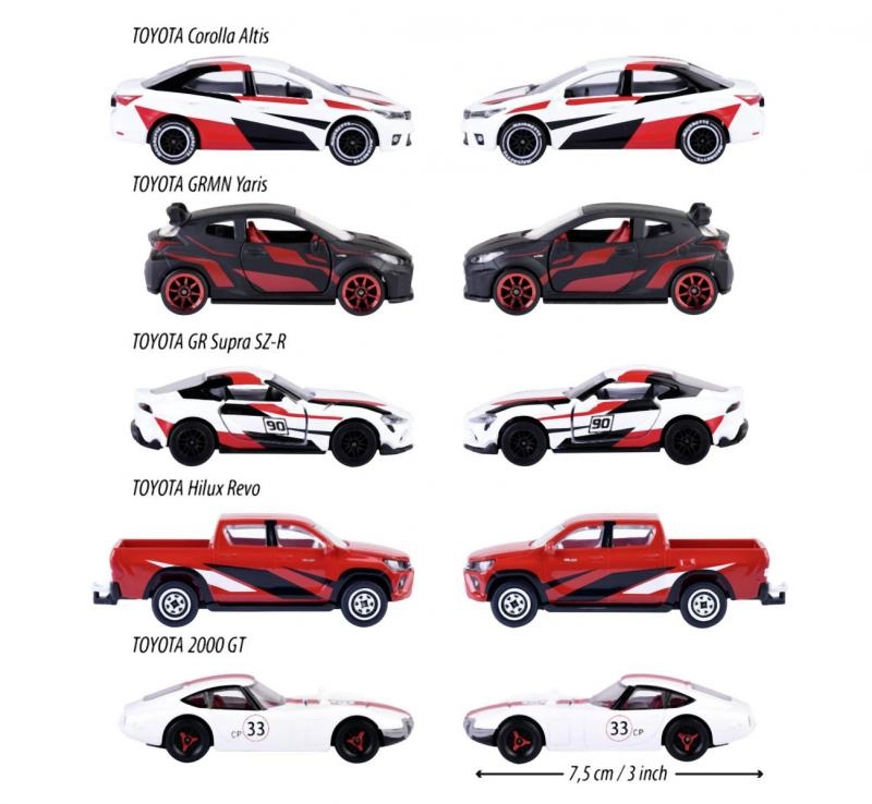 Komplektis on GR Supra, GRMN Yaris, Hilux Revo, Corolla Altis ja 2000 GT – suurepärane kollektsiooni alustamiseks või kingituseks brändi fännidele.