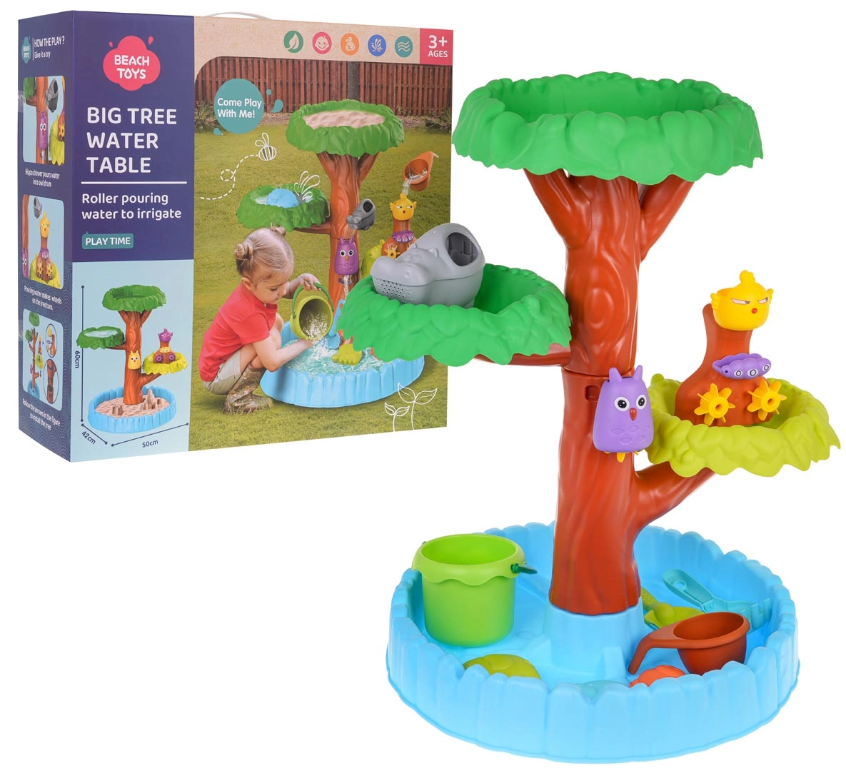 Vala vett puu ülemistele tasanditele ja vaata, kuidas see voolab mööda eri astmeid alla, paneb hammasrattad pöörlema ning jõuab alumisse mahutisse. Tänu erksatele värvidele ja nutikale disainile arendavad lapsed loomulikult peenmotoorikat, loogikat ja kujutlusvõimet – olgu nad mängimas koduaias või rannas.