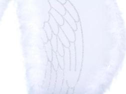 Valged tiivad hõbedaste kaunistustega ja karvase servaga loovad võluva ilme.