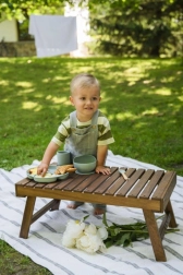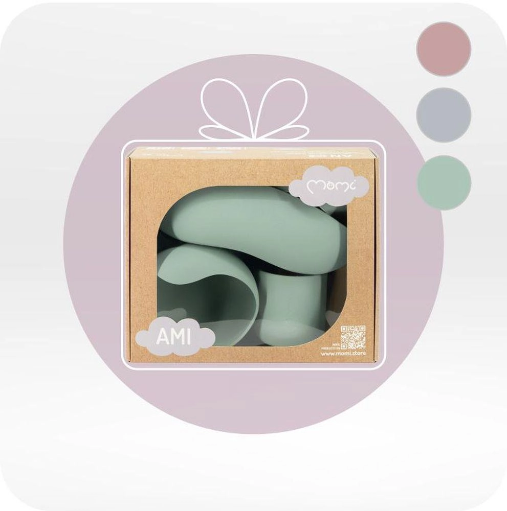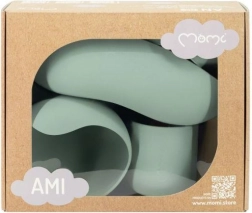 MoMi AMI komplekt on ideaalne abiline lastele iseseisva söömaõppimise ajal. See sisaldab silikoonist nõusid iminappadega, mugavat pudipõlle ja riistade komplekti puidust käepidemetega, mis tagavad ohutuse ja mugavuse söömise ajal.