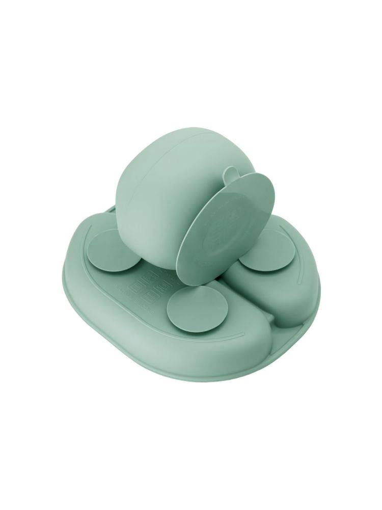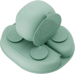 Kõrgendatud servad ja põhja all olevad iminapad tagavad, et söögikomplekt püsib kindlalt laual. Kohandatud suurusega söögiriistad sobivad väikestele kätele, mis õpivad iseseisvalt sööma.