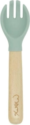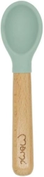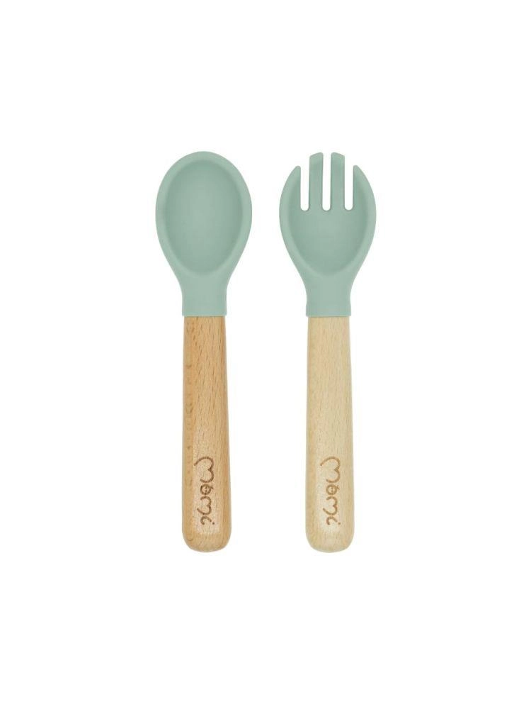 Puidust käepidemete ja silikoonist otsikutega söögiriistad sobivad väikestele kätele ning võimaldavad lihtsat ja ohutut kasutamist.