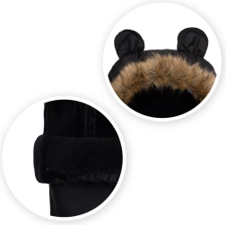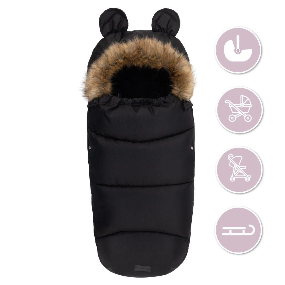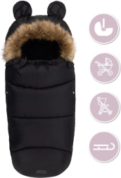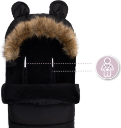 Soe talvine soojakott MoMi Cozy elegantses mustas värvitoonis hoiab sinu beebi soojas ja turvaliselt ka pakaselise ilmaga. Tänu vett hülgavale pealismaterjalile ja pehmele karvasele sisule pakub see suurepärast soojusisolatsiooni, kaitset tuule, vihma ja lume eest ning maksimaalset mugavust jalutuskäikudel. Universaalsed rihmaavad võimaldavad kiiret paigaldust vankrisse, turvahälli või saanile, samal ajal kui armsate kõrvadega kapuuts lisab soojakotile stiili ja mängulisust.