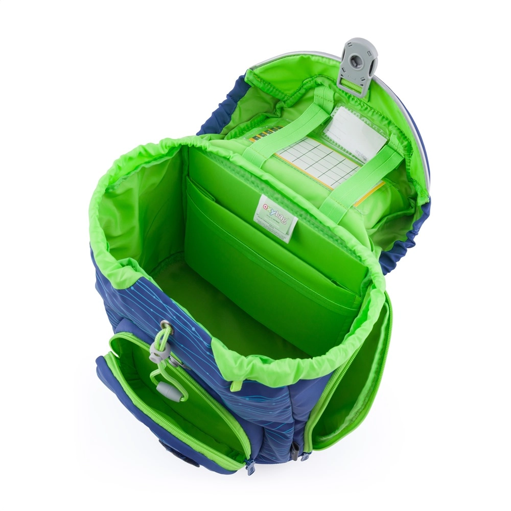 OXY Sherpy Blue komplekt on usaldusväärne valik 1.–3. klassi lastele. Peasektsioon tõmbenööri ja magnetkinnitusega võimaldab hõlpsat ühe käega avamist, sisemine eraldaja hoiab korras õpikud ja vihikud. Esitasku einele ning küljetaskud tõmblukuga pakuvad lisaruumi ja selget ülevaadet.