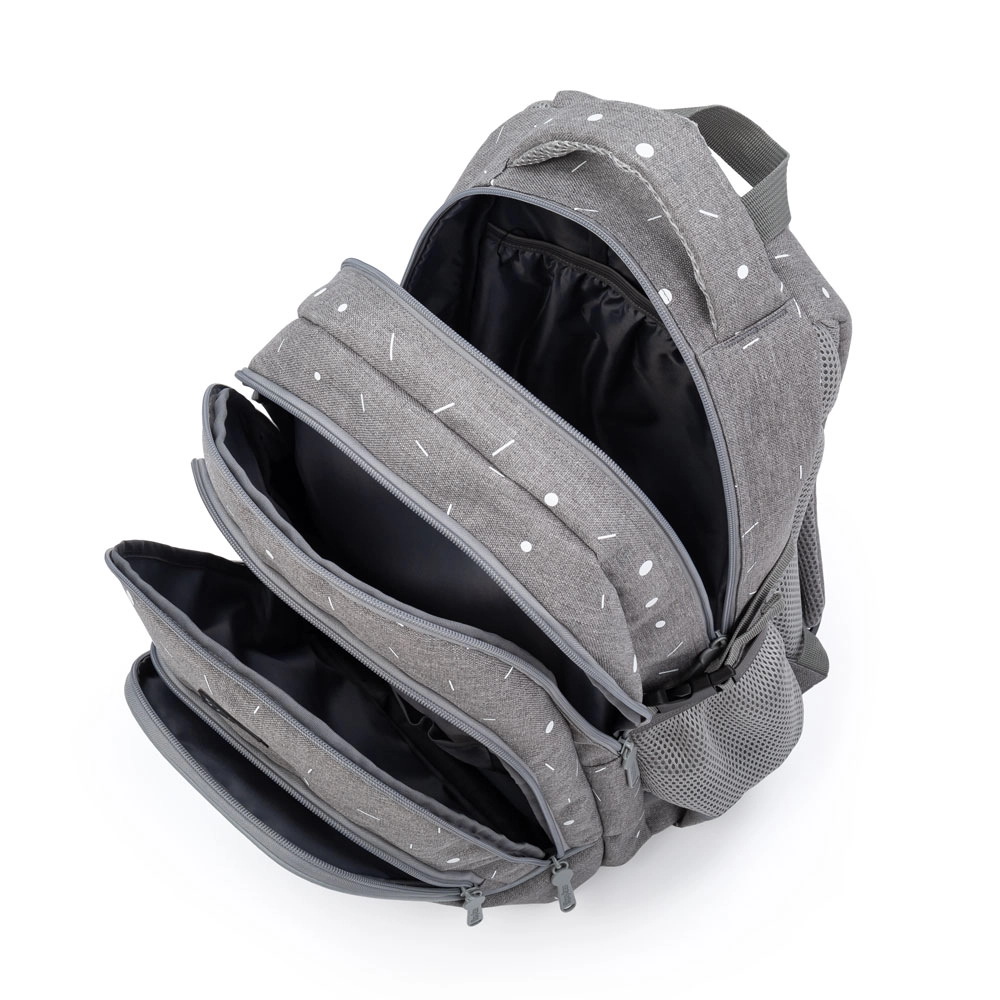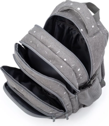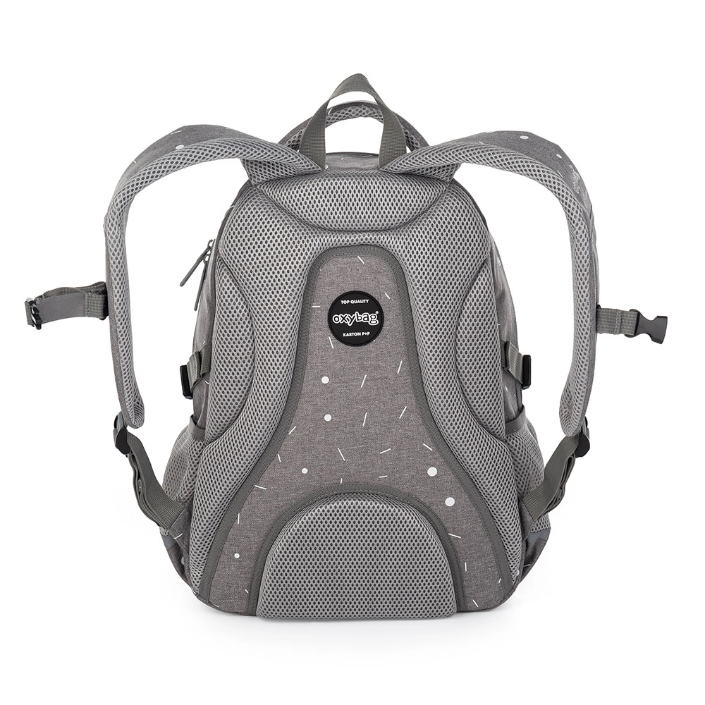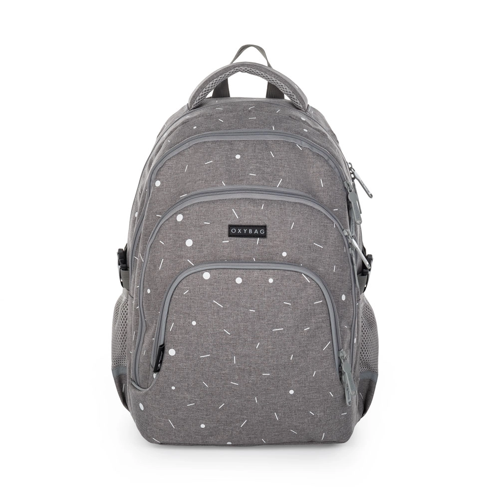 Kerge ja mahukas õpilasseljakott Oxy Scooler hall geomeetriline pakub kolme sahtlit, 15'' sülearvutitaskut, organiseerijat ja küljetaskut pudelile. Tänu anatoomiliselt kujundatud hingavatele seljapaneelidele, reguleeritavatele õlarihmadele ja rinnarihmale on seda mugav kanda terve päeva. Turvalisust lisavad helkurelemendid.