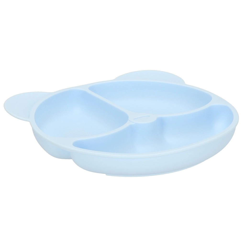 Toidukvaliteediga silikoonist taldrik mitme sektsiooniga võimaldab ülevaatlikku serveerimist ja toetab iseseisvat söömist. Mänguline karukuju köidab laste tähelepanu.