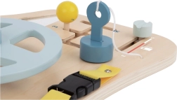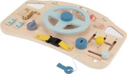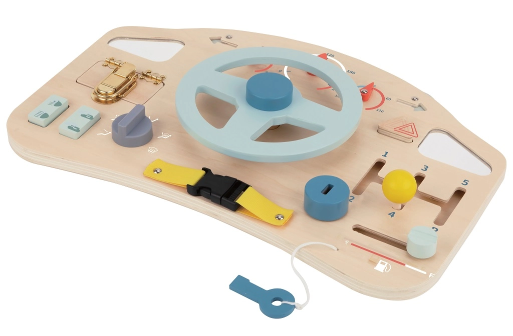 Laud aitab lastel parandada peenmotoorseid oskusi interaktiivsete elementide abil, nagu rool, hoovad ja nupud.