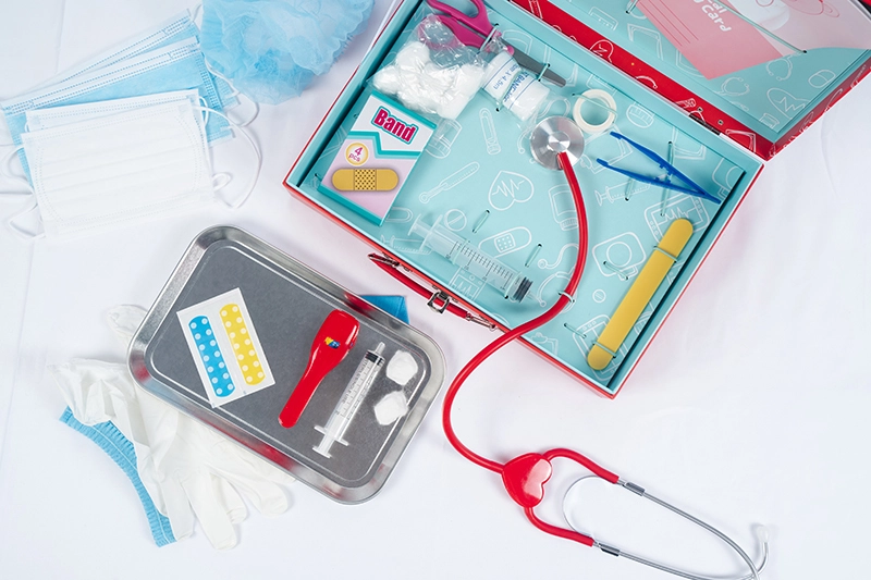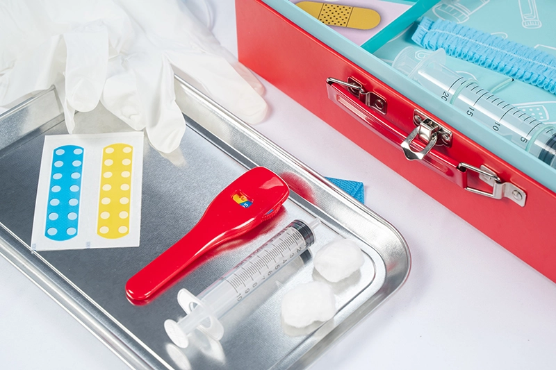 Kohver on kergesti kaasaskantav ja igal asjal on oma koht, mis tagab kiire ja lihtsa hoiustamise. Lapsed saavad oma meditsiinilised vahendid kõikjale kaasa võtta ning mängida väikest arsti ükskõik kus ja millal.