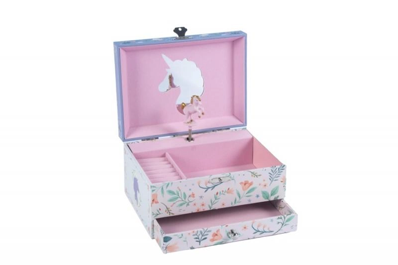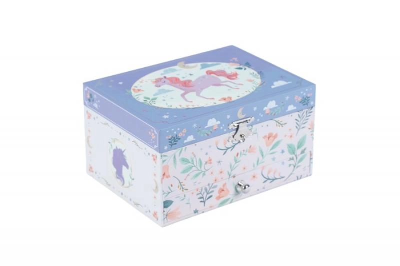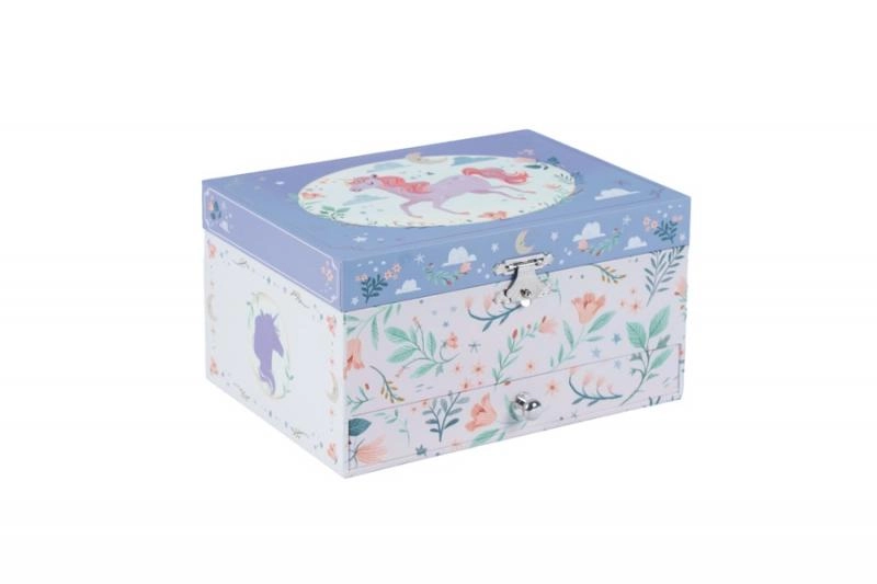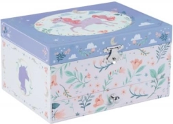 Mängukastiga ehtekarp on täiuslik kingitus lastele, kellele meeldivad võluvad ja originaalsed aksessuaarid. Karbi avamisel kõlab meloodia ja koos sellega hakkab keerlema kaunis ükssarvik.
