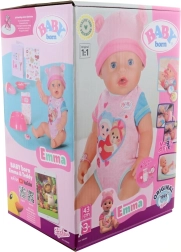 Emma on armas BABY born nukk realistlike funktsioonidega, mida lapsed armastavad. Ta joob vett pudelist, luti pööramisel avab ja sulgeb silmi, oskab valada pisaraid ning pissida mähkmesse või potile. Tänu vastupidavale teostusele saab ta hakkama ka vanniskäiguga, nii et lapsed saavad temaga nautida mängu nii vannis kui ka selle kõrval.