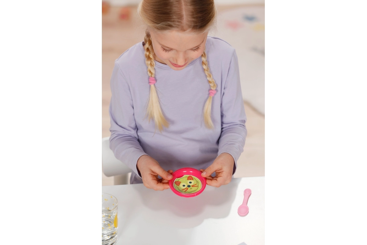 Komplekti kuulub ka võlunõu, millel ilmub vee mõjul lemmiktoit, ning potike, kus „võluväel“ on näha piss või kakamine – ideaalne igapäevaste hooldusrituaalide harjutamiseks. Rikkalik varustus ja riiete vahetamine arendavad lapse fantaasiat, empaatiat ja peenmotoorikat.