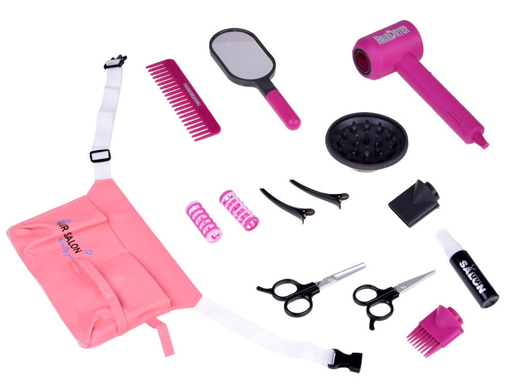 See roosa juuksurikomplekt on ideaalne väikestele soenguhuvilistele. Tänu rikkalikule sisule saavad lapsed turvaliselt matkida juuksuri tööd, katsetada uusi soenguid ning hoolitseda nii nukkude kui ka pereliikmete juuste eest. Kerge materjal ja selge paigutus tekstiilist organisaatoris tagavad mugava kandmise ja kiire ligipääsu kõikidele tööriistadele.