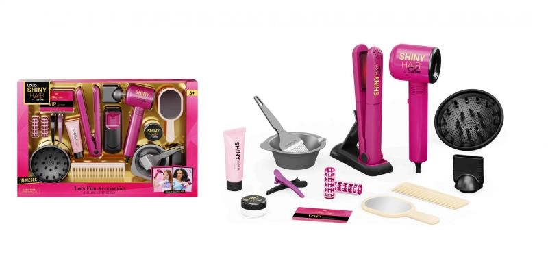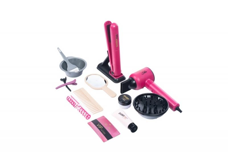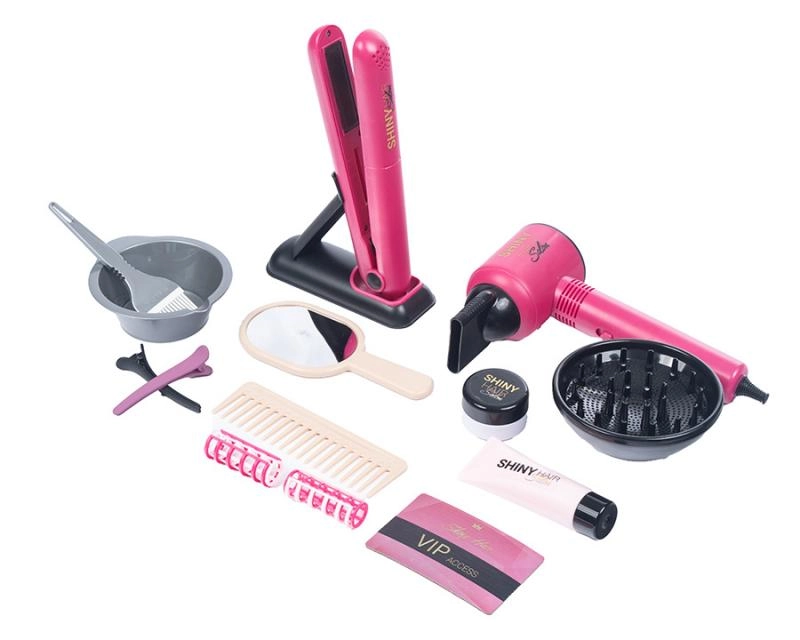 Arendage loovust ja kujutlusvõimet selle 16-osalise laste juuksurikomplektiga. Seest leiate patareidega fööni, juuksetriikraua, kamma, klambrid ja rullid, peegli ning juuksevärvimise tarvikud – kõik realistlikuks ilusalongimänguks.