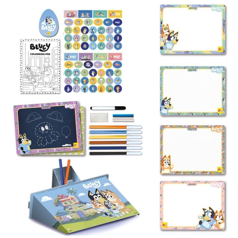 See kooli joonistamiskomplekt armsa BLUEY motiiviga seljakotis innustab lapsi loominguliselt end väljendama. Tänu illustreeritud juhendvihikule õpivad väikesed käed hõlpsalt joonistamise ja ülekandmise põhitõdesid otse praktilisel tahvlil.
