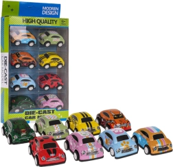 See värvikirev 8 miniatuurse auto komplekt ühendab vastupidavuse, disaini ja lihtsa kasutuse. Modernsete motiividega metallkere ja kummirehvid tagavad pika tööea ning suurepärase haarduvuse siledatel pindadel. Tagasikeritav mehhanism võimaldab autodel lühikese tagasi tõmbamise järel ise kiiresti edasi sööstma hakata.