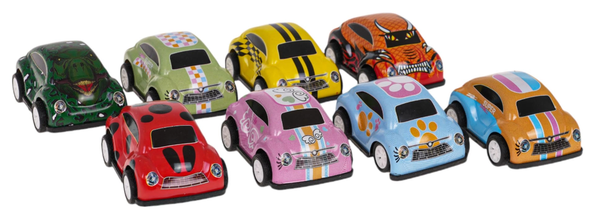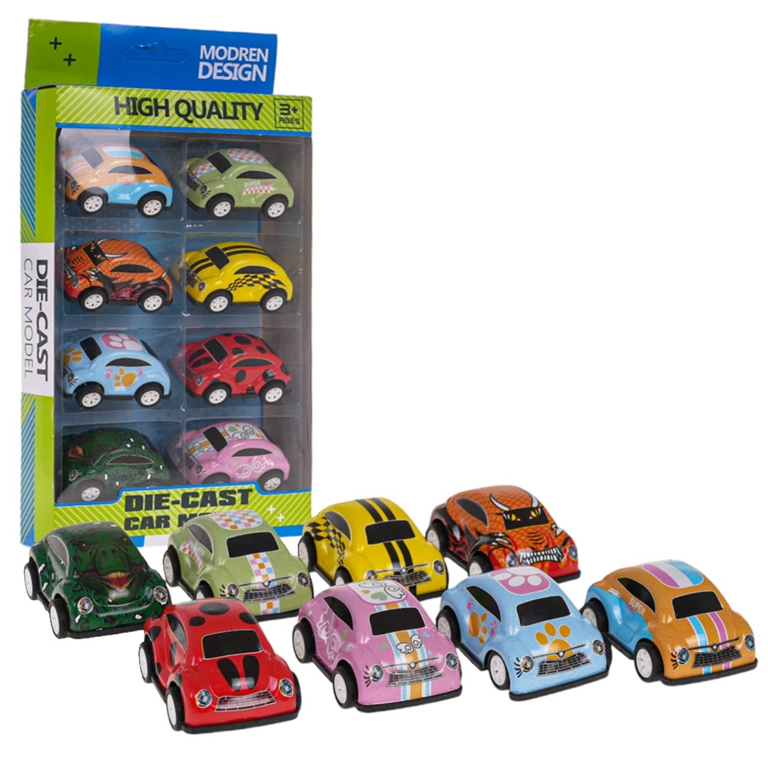 Avasta väikestele võidusõitjatele mõeldud lõbu kaheksa tagasikeritava jõuga mudelauto komplektiga. Igal autol on metallist kere, kummirehvid hea haarduvuse jaoks ja erksad värvid, mis toetavad laste kujutlusvõimet. Tõmba auto lihtsalt tagasi ja see sööstab ise edasi – ideaalne võidusõitudeks ja kogumisrõõmuks alates 3. eluaastast.