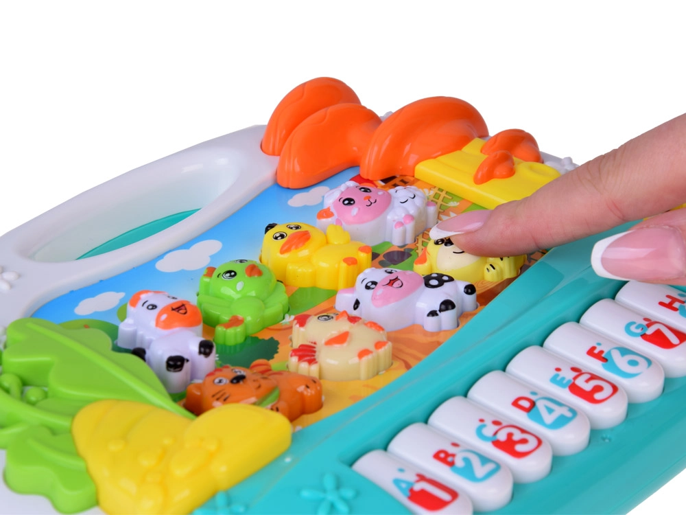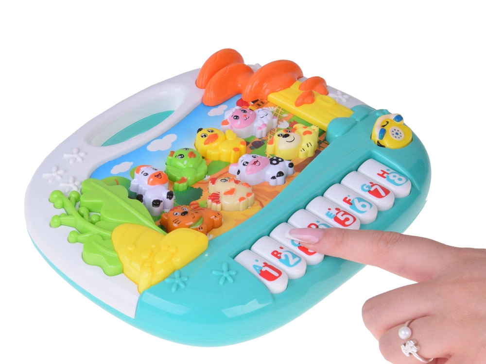 Meie interaktiivne loomadega klaver on suurepärane viis tutvustada lapsi muusikamaailmaga. Sellel on 8 klahvi koos numbrite ja tähtedega ning 8 loomanuppu, mis tagavad tundidepikkuse hariva meelelahutuse ja toetavad lapse arengut. Erinevad funktsioonid arendavad loovust, silma-kõrva koordineerimist ning väikeste käte peenmotoorikat.
