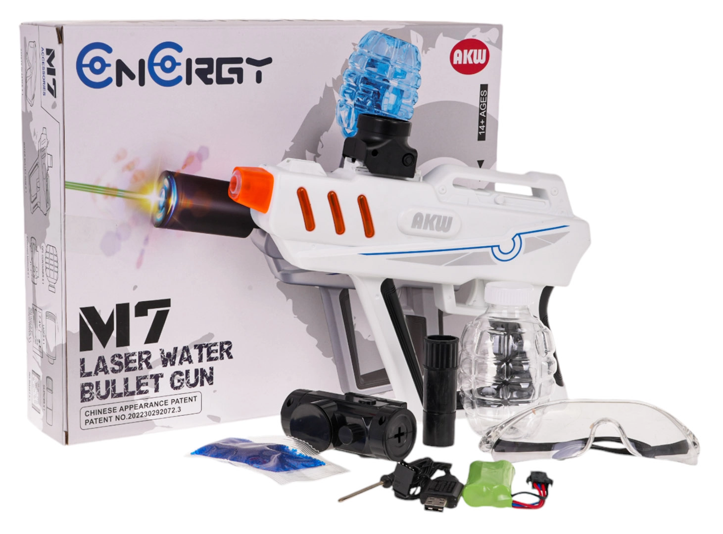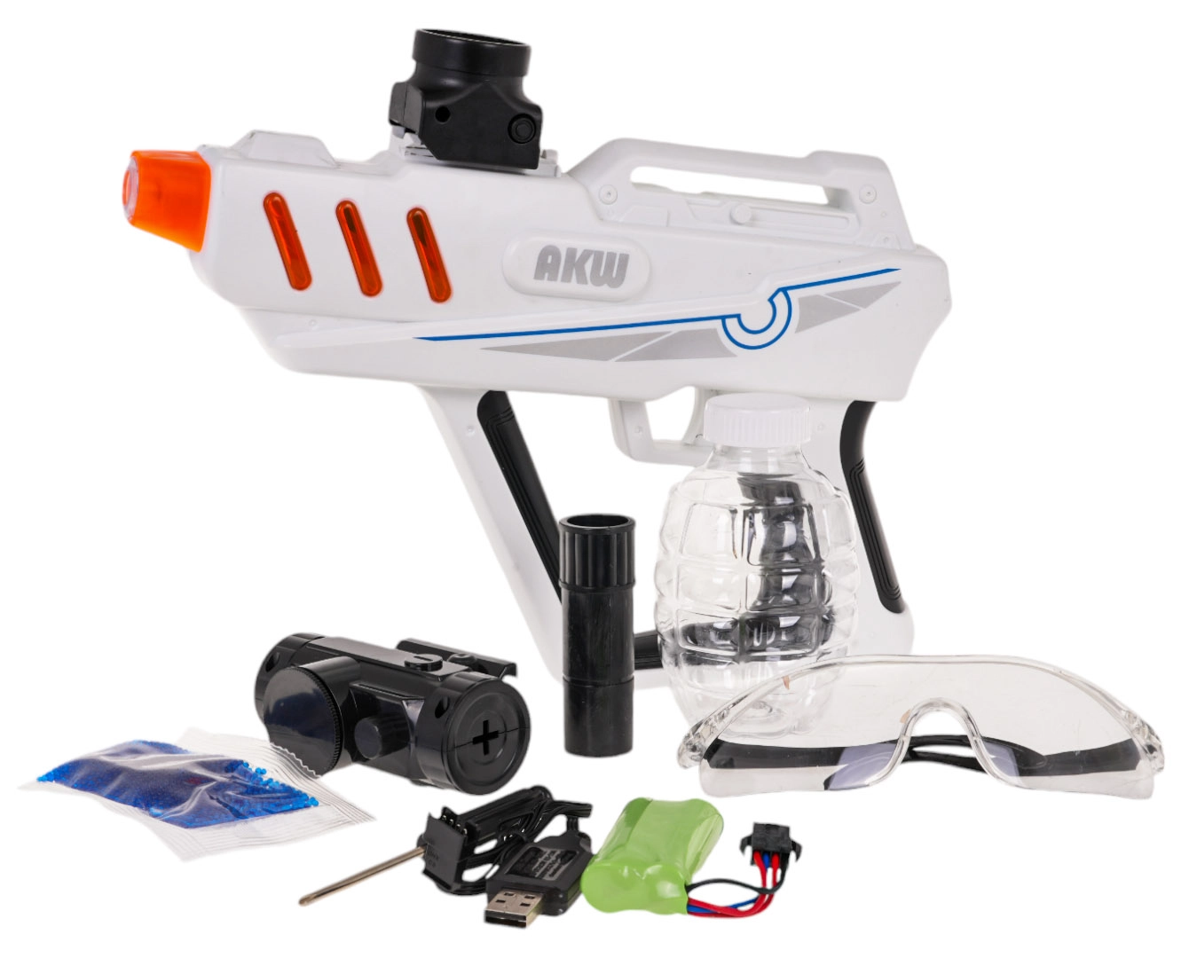 Kuulide ettevalmistamine on lihtne – vala neile vesi ja lase neil mõne tunni jooksul paisuda läbimõõduni 7–8 mm. Pakendist leiad kaitseprillid turvalisemaks mänguks, laetava aku 7,4 V 500 mAh ning USB-kaabli mugavaks laadimiseks.