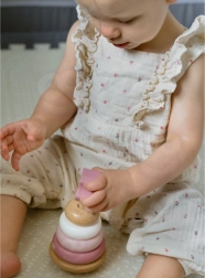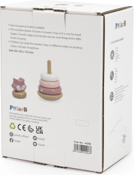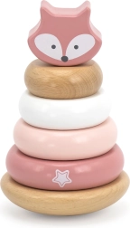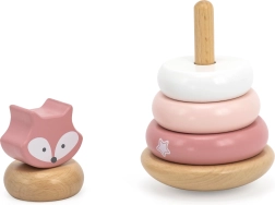See puidust virnastamismänguasi sisaldab 6 detaili õrnades pastelltoonides, sh pealmine osa rebasepeaga. Lapsed lükkavad rõngaid keskse pulga peale vastavalt suurusele, värvile või oma fantaasiale – nii harjutavad nad loogilist mõtlemist, kannatlikkust ja ruumitaju.