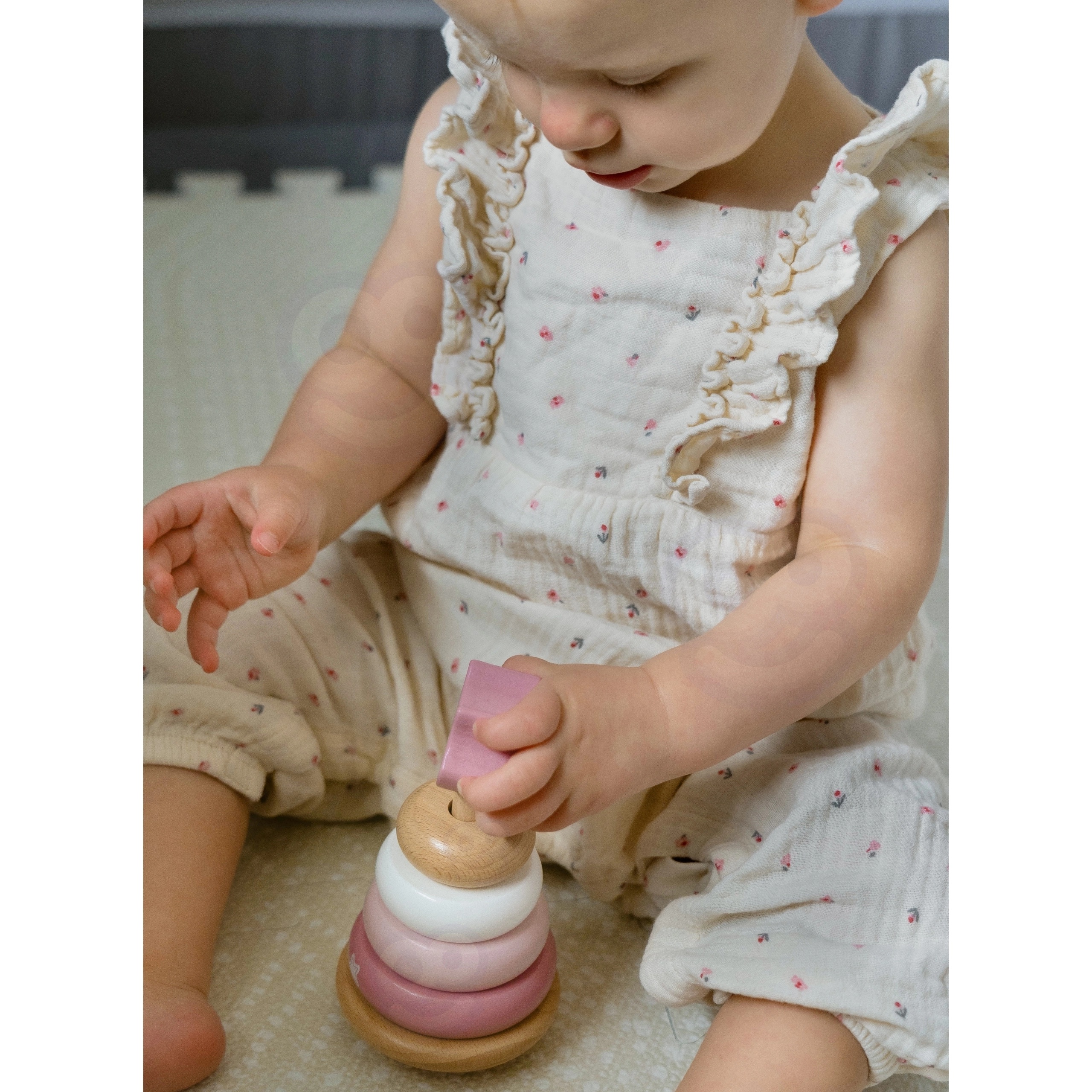 Rõngaste lükkamine pulga peale treenib loomulikult haaret, täpsust ja käe–silma koordinatsiooni – ideaalne esimesteks motoorseteks väljakutseteks.