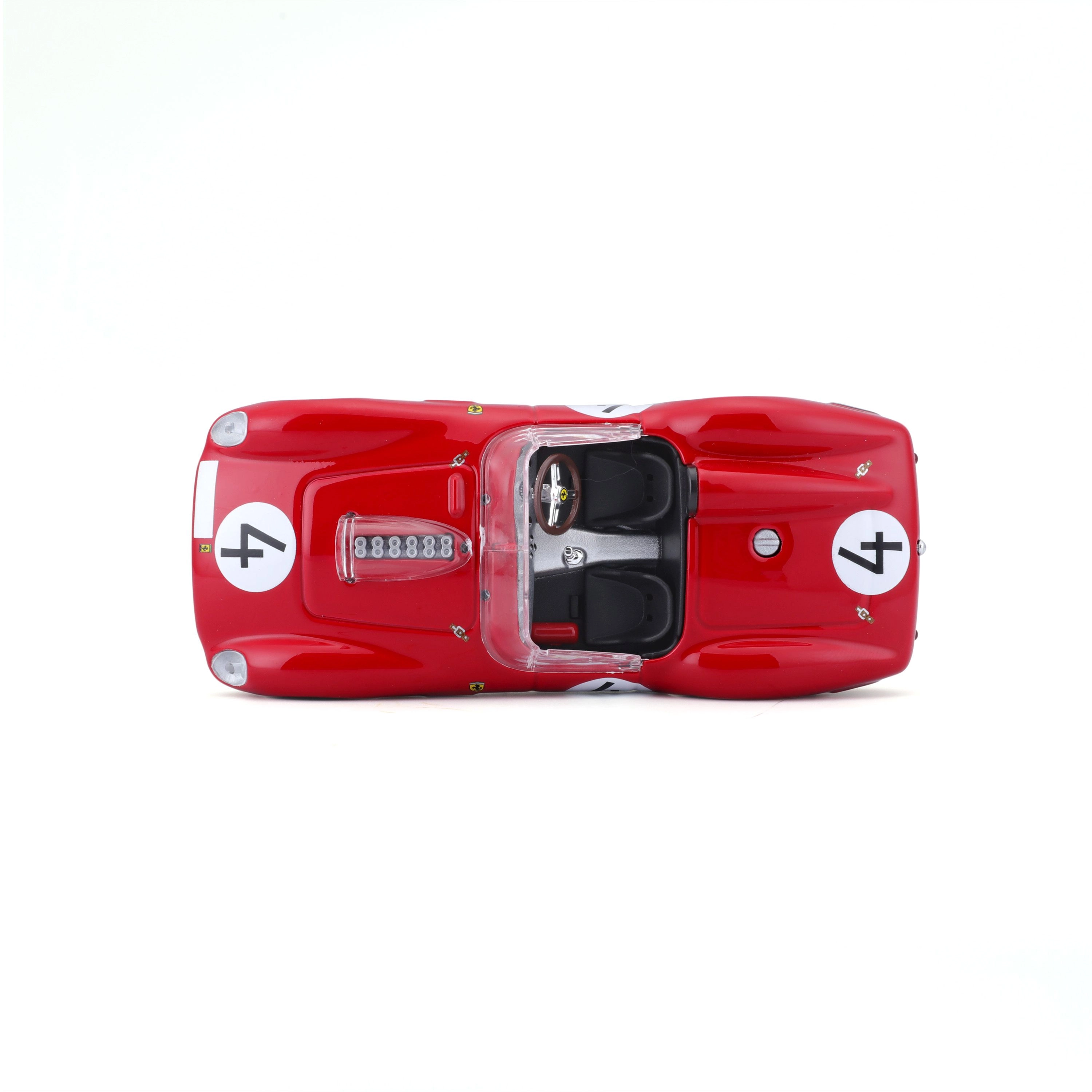 Mudel on valmistatud kvaliteetsest survevalualumiiniumist (die-cast) metallist plastdetaile kasutades peente nüansside jaoks. Tänu truule keredisainile, läbimõeldud interjöörile ja sujuvalt veerevatele ratastele näeb see suurepärane välja ning liigub hästi siledal pinnal. Komplektis on originaalne Ferrari Racing karp turvaliseks hoiustamiseks ja eksponeerimiseks.