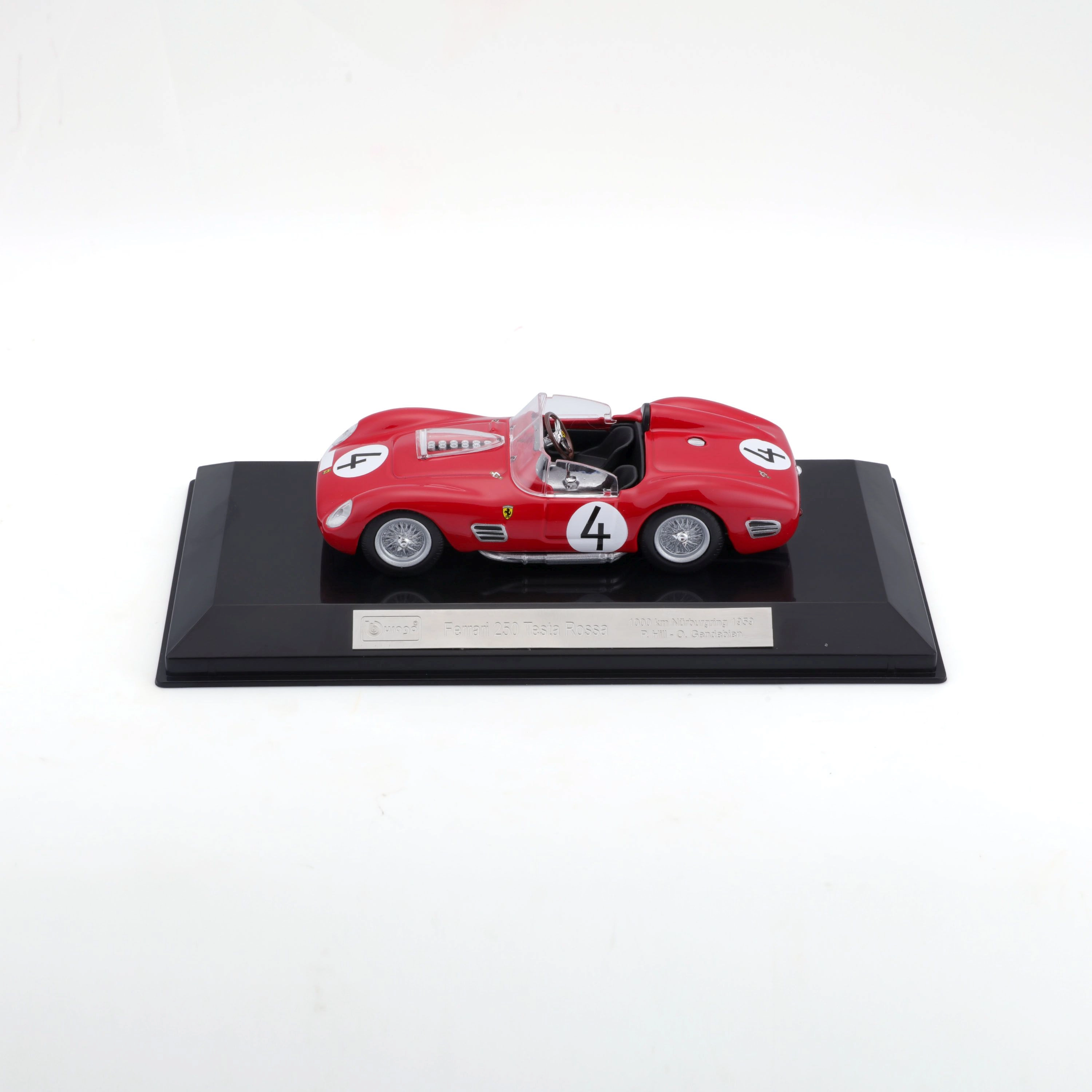 Avastage motospordi legend täpse teostusega. See litsentseeritud mudel FERRARI 250 TESTA ROSSA mõõtkavas 1:43 toob esile realistseid detaile nagu traatveljed, külgväljalasked, läbipaistev esiklaas ja võistlusnumbrid. Täiuslik vitriini või kingitusena klassikaliste võidusõiduautode austajatele.