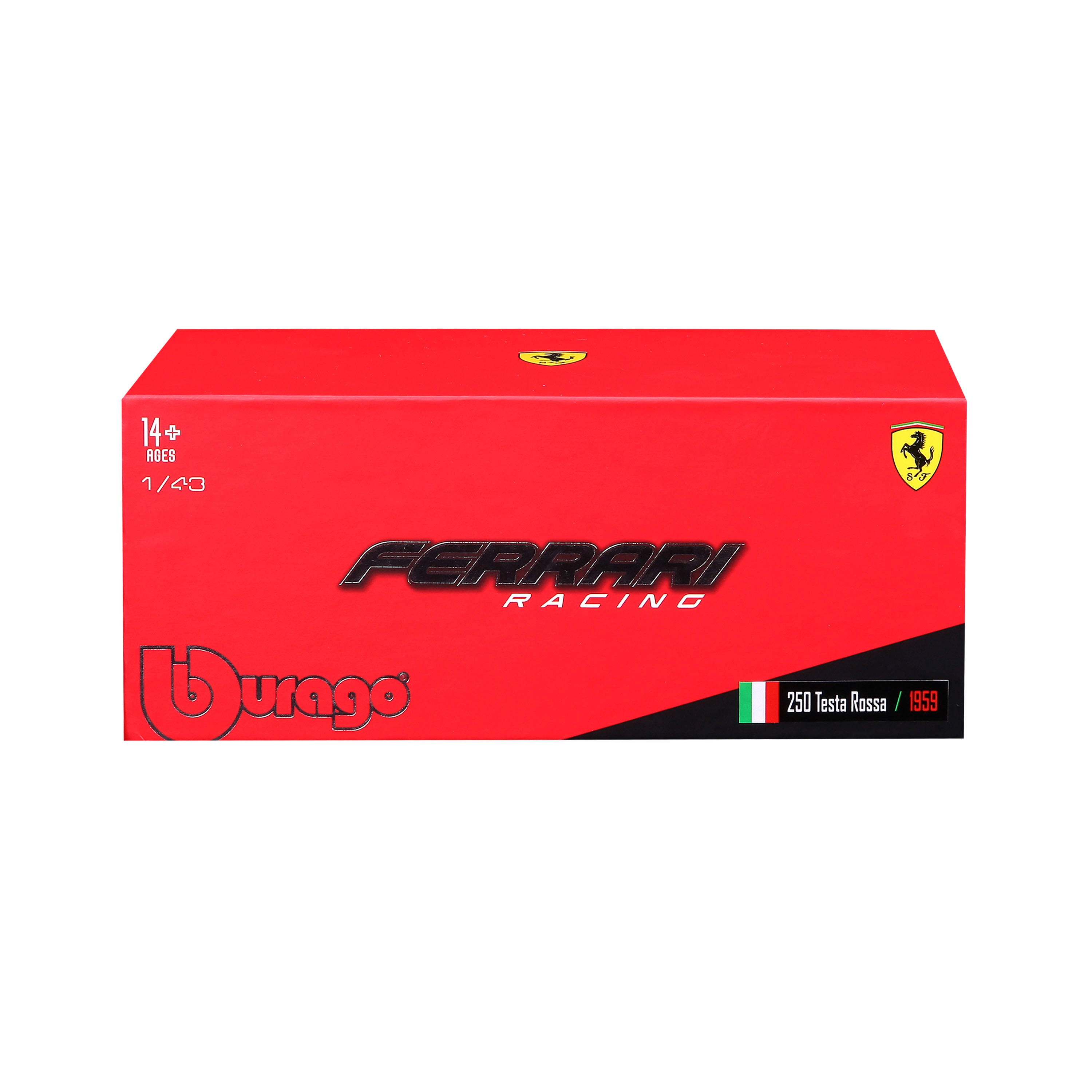 Silmapaistev karp FERRARI ja BBURAGO logodega kaitseb mudelit ning sobib nii eksponeerimiseks kui ka kinkimiseks.