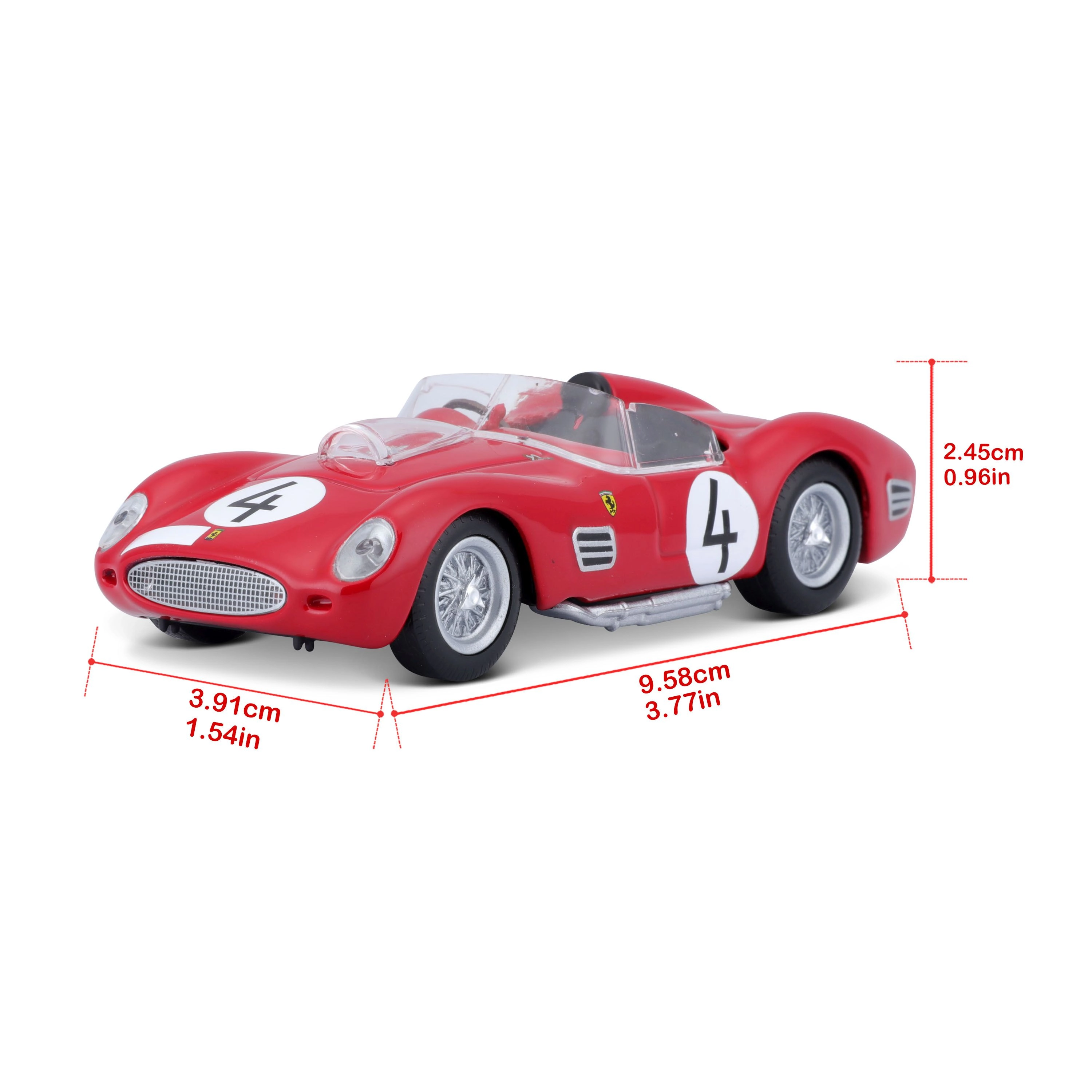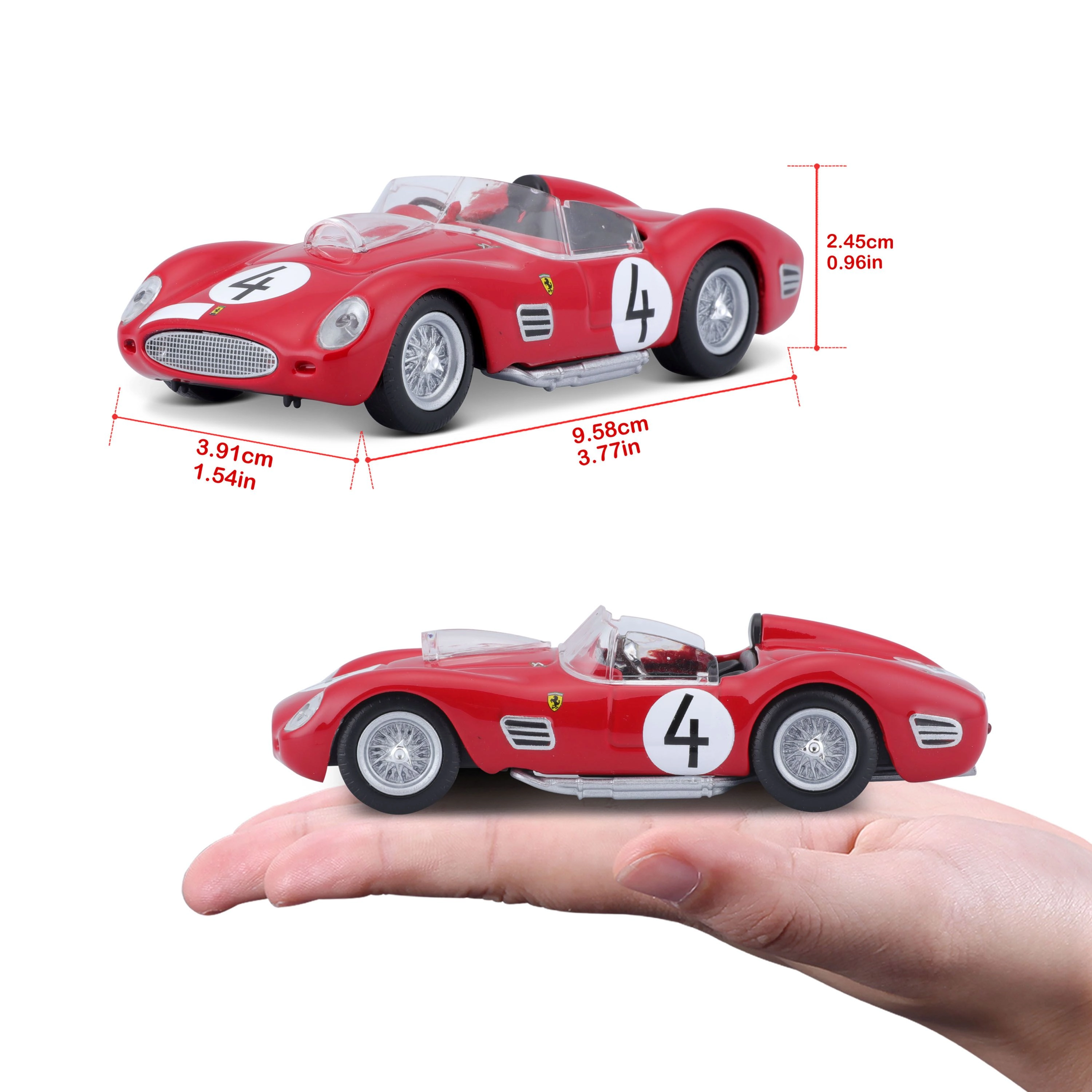 Ideaalne suurus kogumisse. Mudel on kerge, vastupidav ja sobitub suurepäraselt teiste Ferrari Racing sarja autodega.