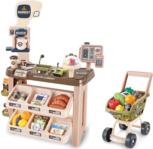 Komplektis on rikkalik lisavarustus: kassaaparaat, triipkoodilugeja, makseterminal, maksekaart, pangatähed, mündid ja ostukäru; lisaks puuviljad, köögiviljad, piim, kohv, mahl, küpsised, pitsa, pähklid ja muud toiduained realistseks mänguks. Elektroonilisi elemente on lihtne juhtida tänu ON/OFF-lülitile, mis asub makseterminali alumisel küljel.