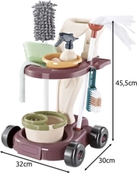 Neli laia ratast, kaks avarat riiulit ning praktilised konksud ja avad tarvikute hoiustamiseks. Lapsed veavad hõlpsalt ämbrit, mopi, kaabitsat ja spreid ning hoiavad kõik ühe pilguga nähtaval.