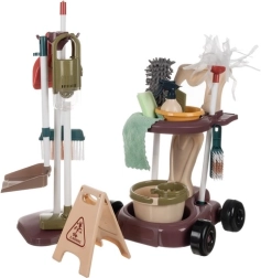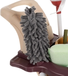 Nutikas paigutus hoiab kõik tarvikud alati käepärast: all mopiväänajaga ämber, üleval kauss, pihustuspudel ja veekaabits. Spetsiaalsed avad ja konksud hoiavad mopi, tolmuharja ja lappe, samal ajal kui stabiilne stend mahutab selgelt harja, käsiharja ja kühvleid. Koristamismäng arendab vastutustunnet, peenmotoorikat ja korraarmastust.